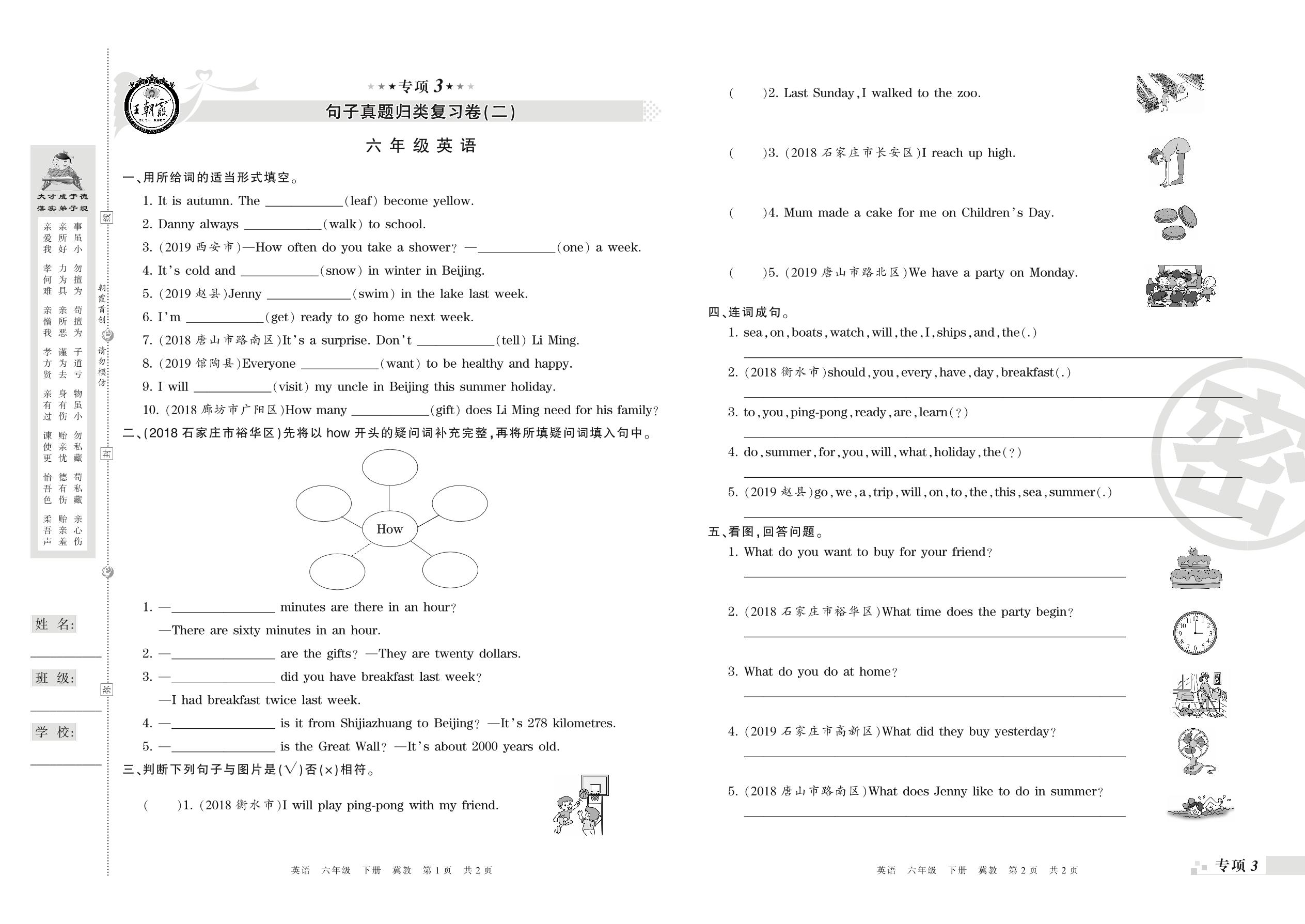 王朝霞期末专项卷——句子(二)、情景交际真题归类复习卷六年级下册英语(冀教版)_R210807163004【0】