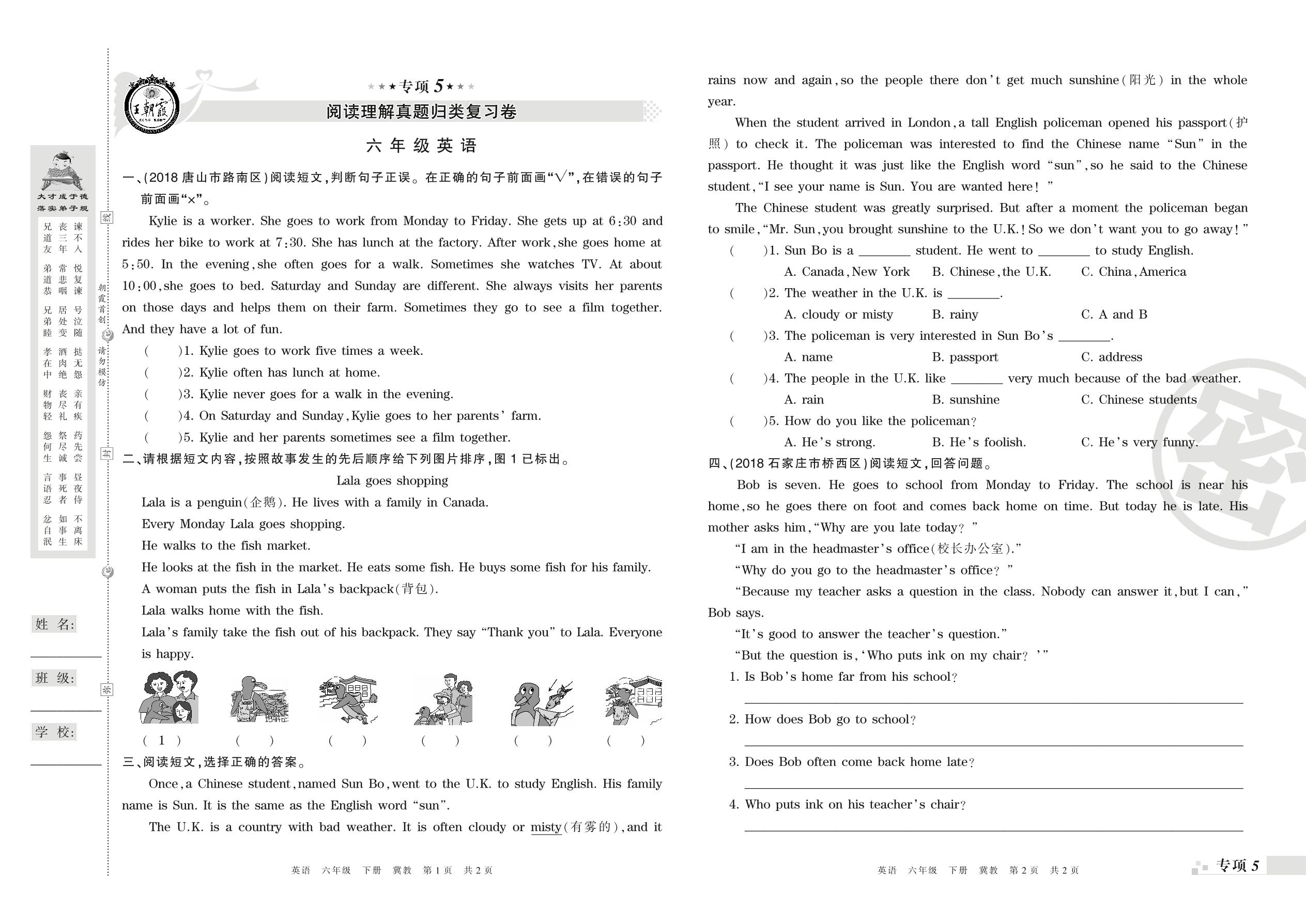 王朝霞期末专项卷——阅读理解、补全短文与写作真题归类复习卷六年级下册英语(冀教版)_R210807163008【0】