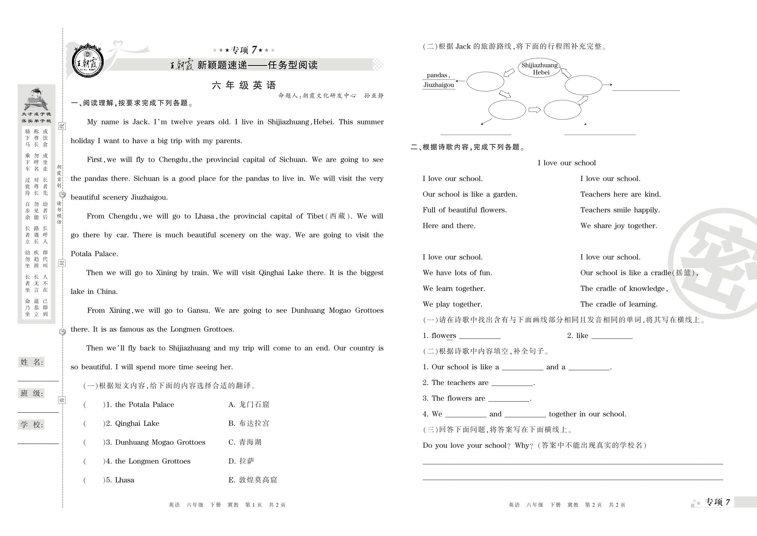 王朝霞期末专项卷——新颖题速递:任务型阅读、绘本阅读六年级下册英语(冀教版)_R210807163012【0】