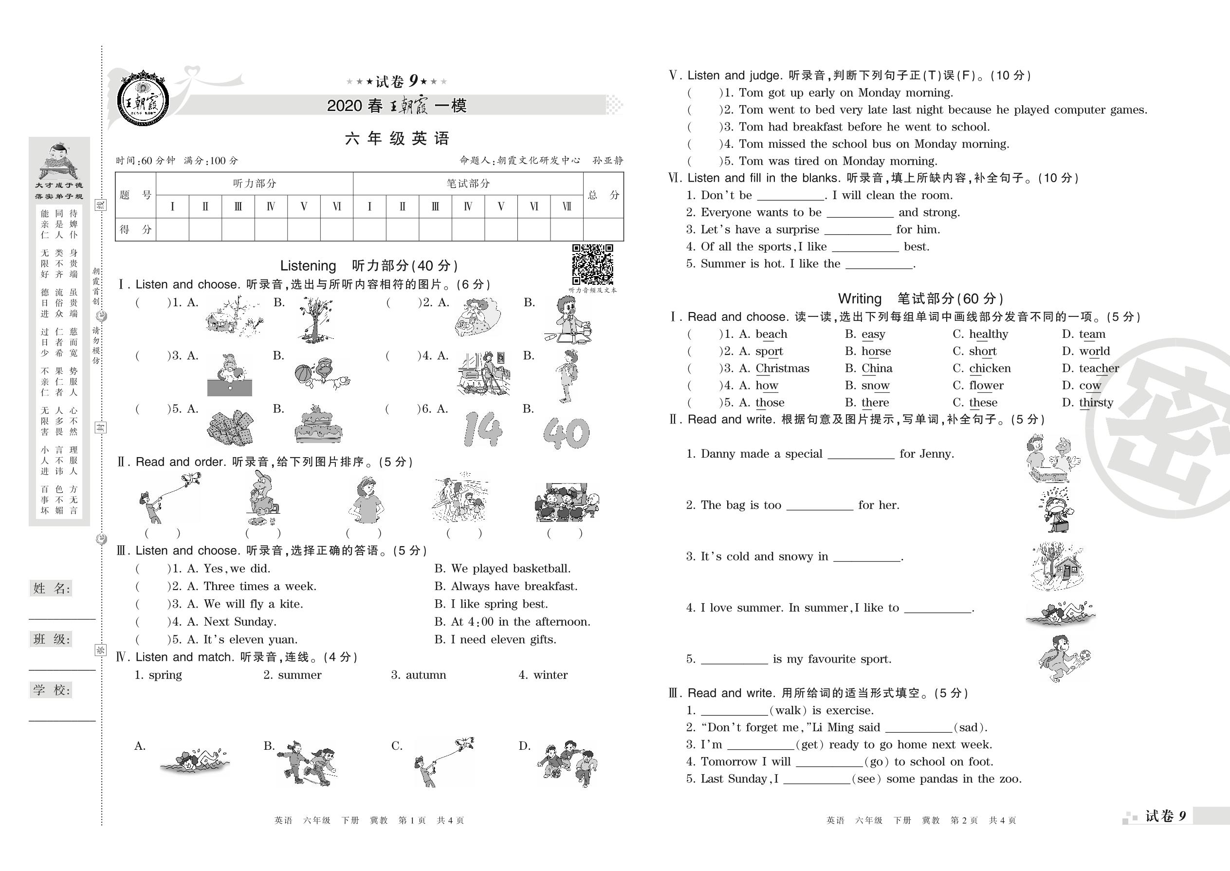 王朝霞期末模拟卷六年级下册英语(冀教版)_R210807163105【9】