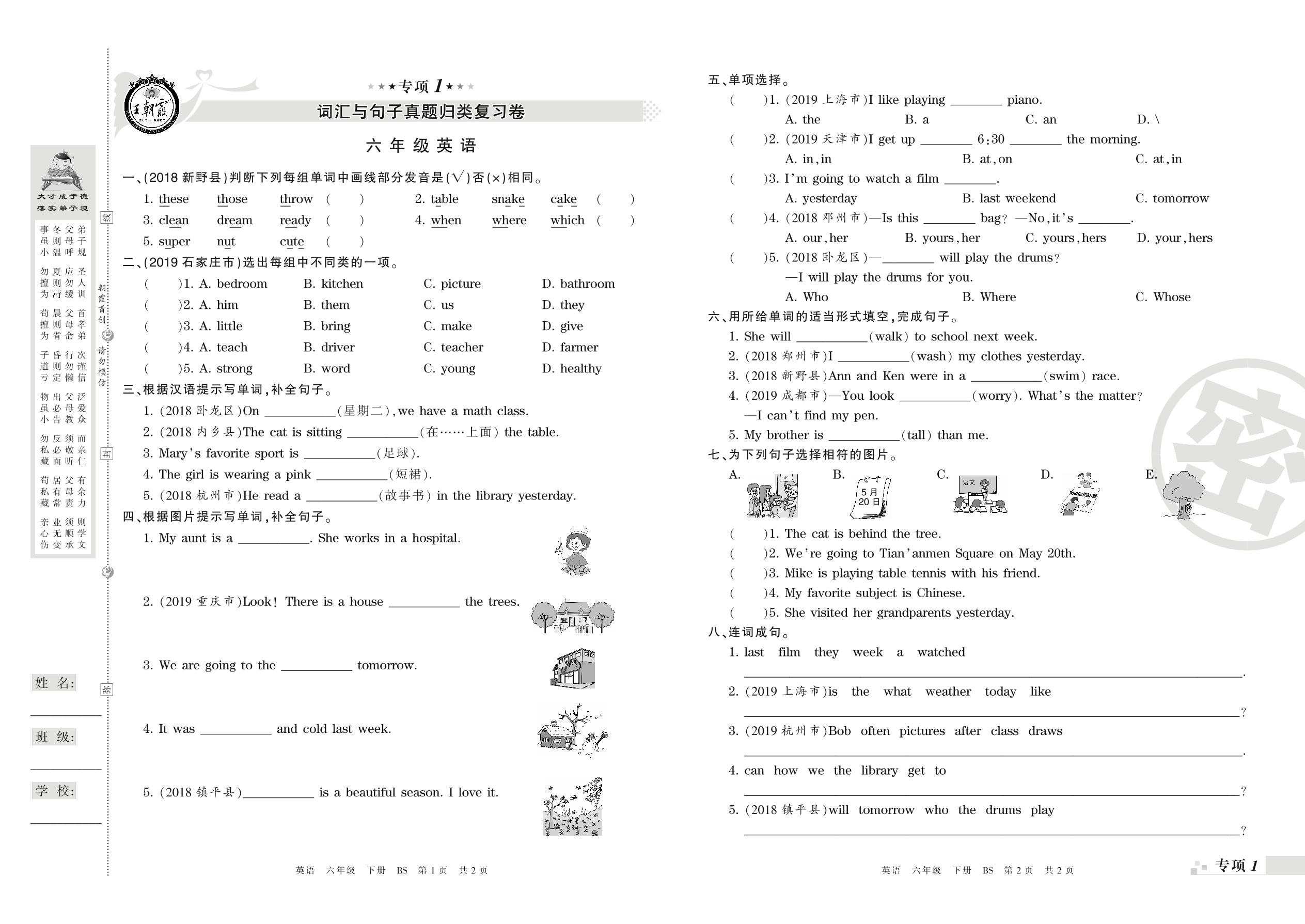 王朝霞期末专项卷——词汇与句子、阅读理解真题归类复习卷六年级下册英语(北师版)_R210807163130【0】