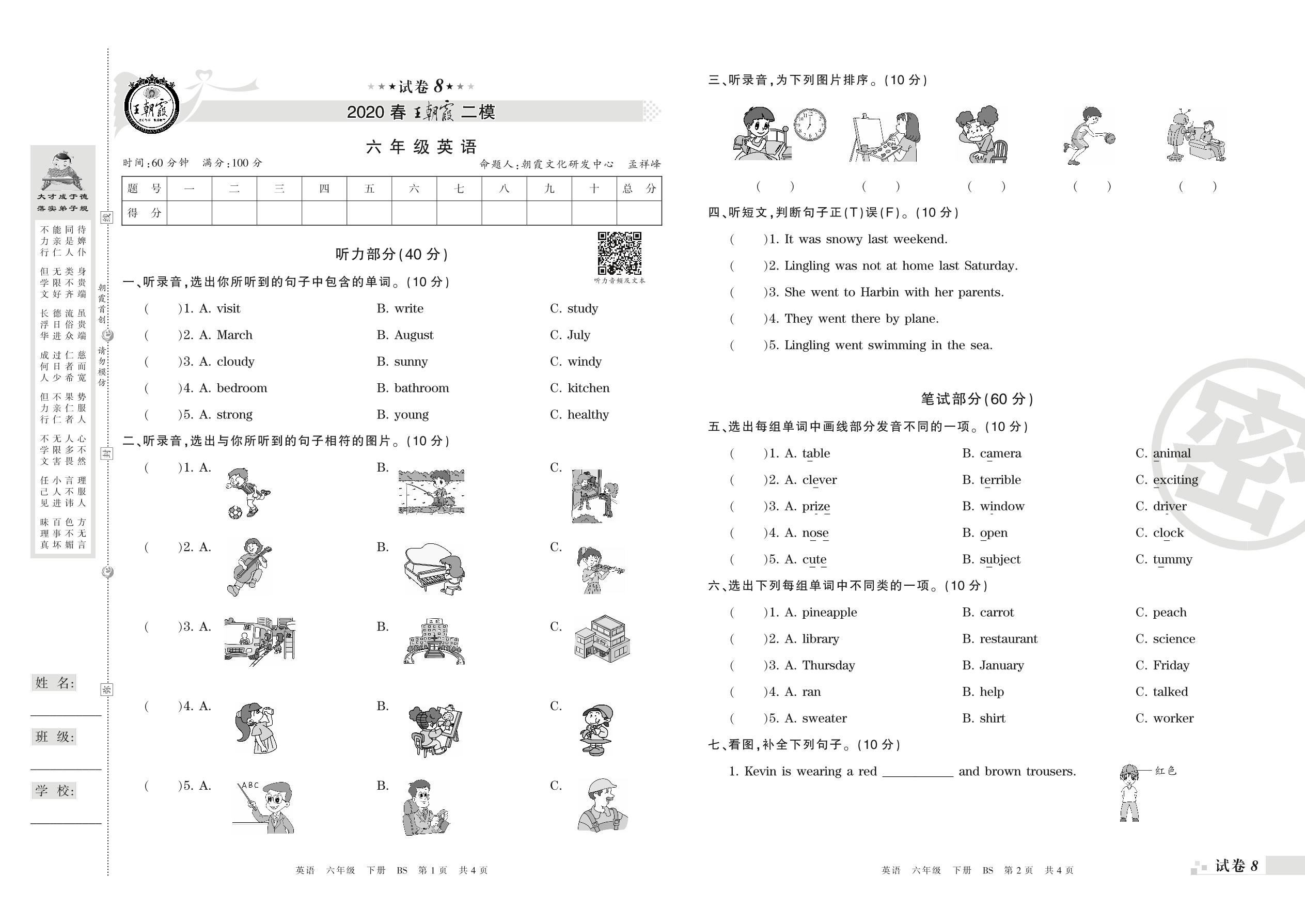 王朝霞期末模拟卷六年级下册英语(北师版)_R210807163157【8】
