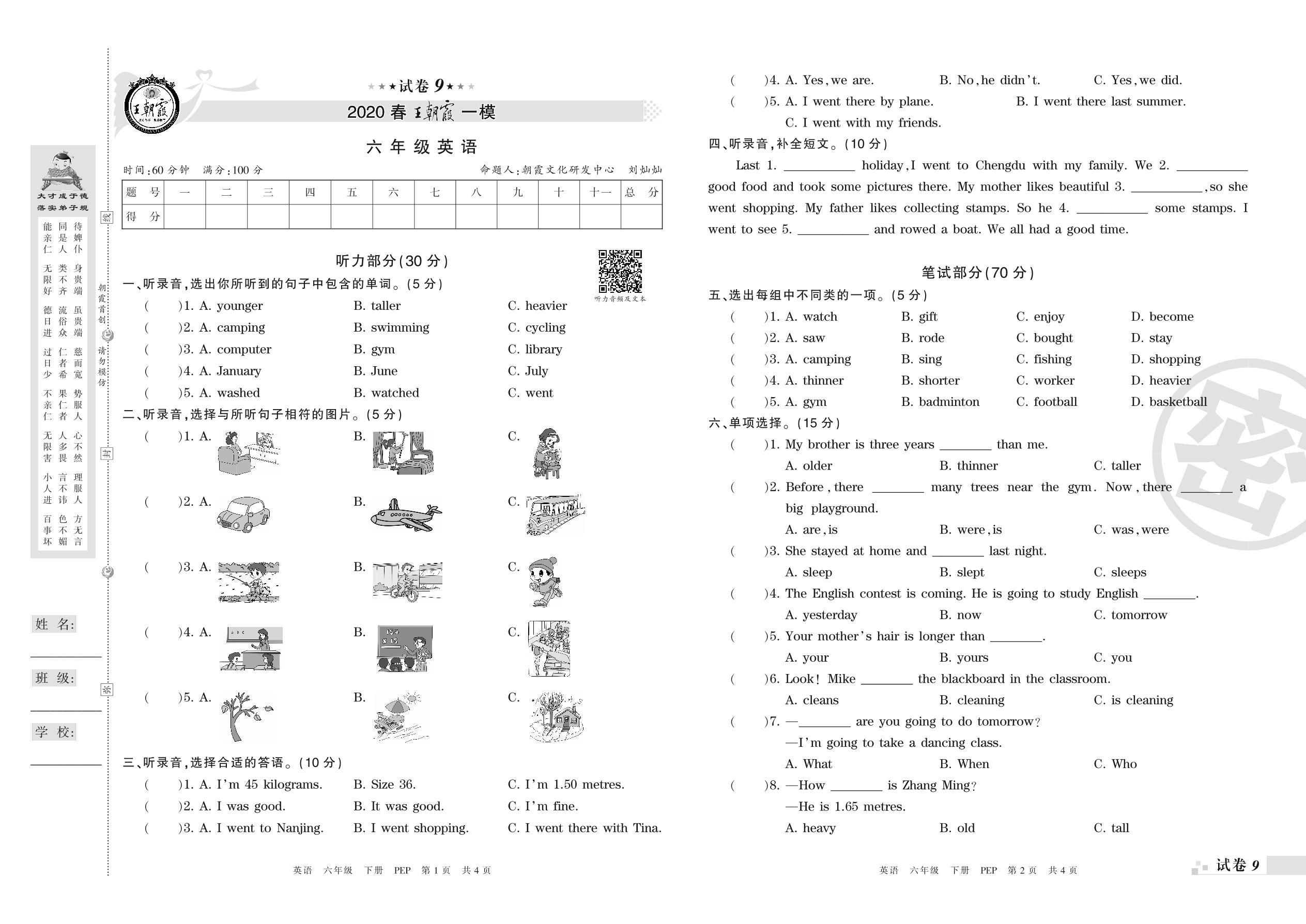 王朝霞期末模拟卷六年级下册英语(PEP版)_R210807163249【9】