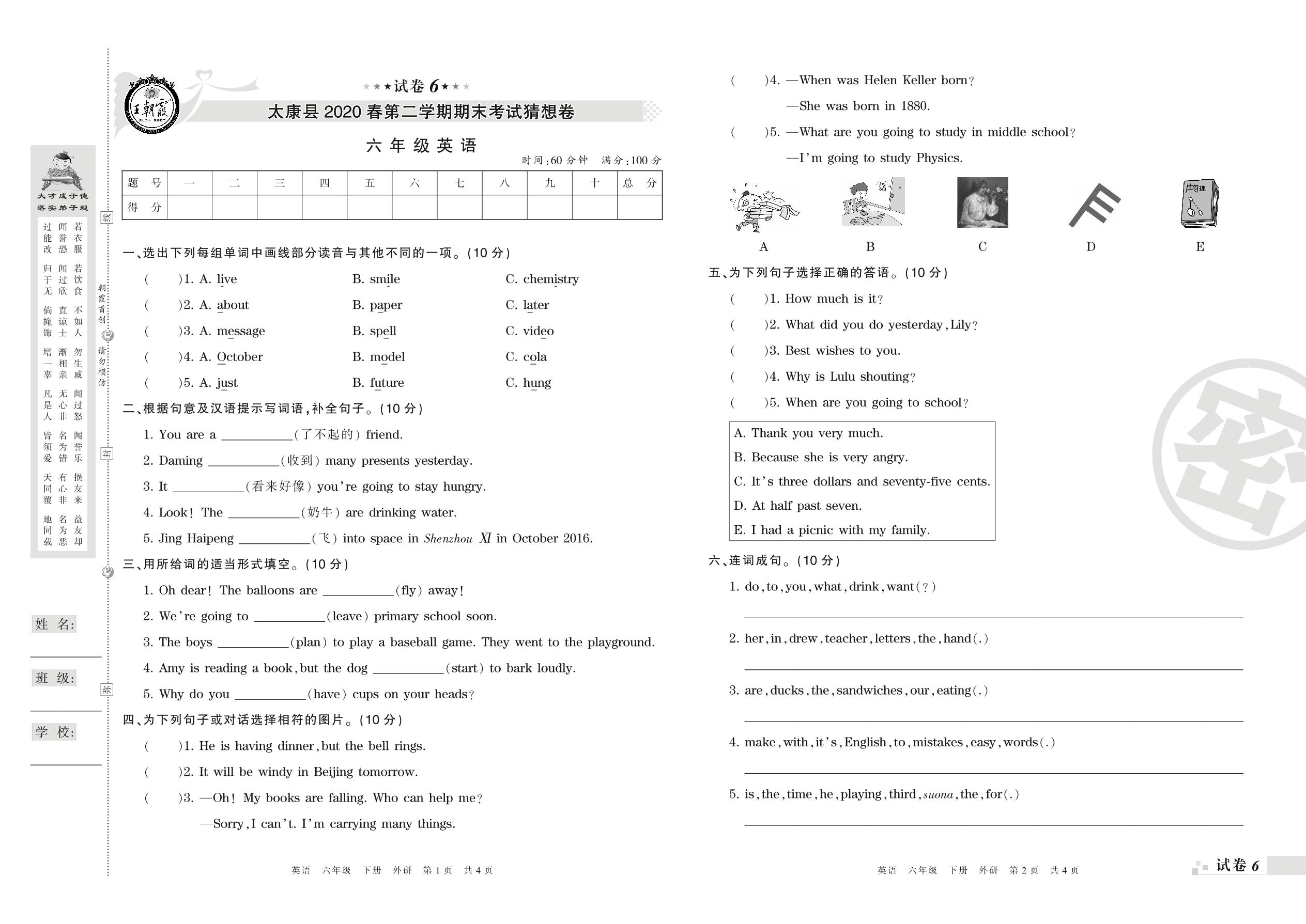 2018-2019学年第二学期周口市太康县六年级英语试卷(外研版)【6】
