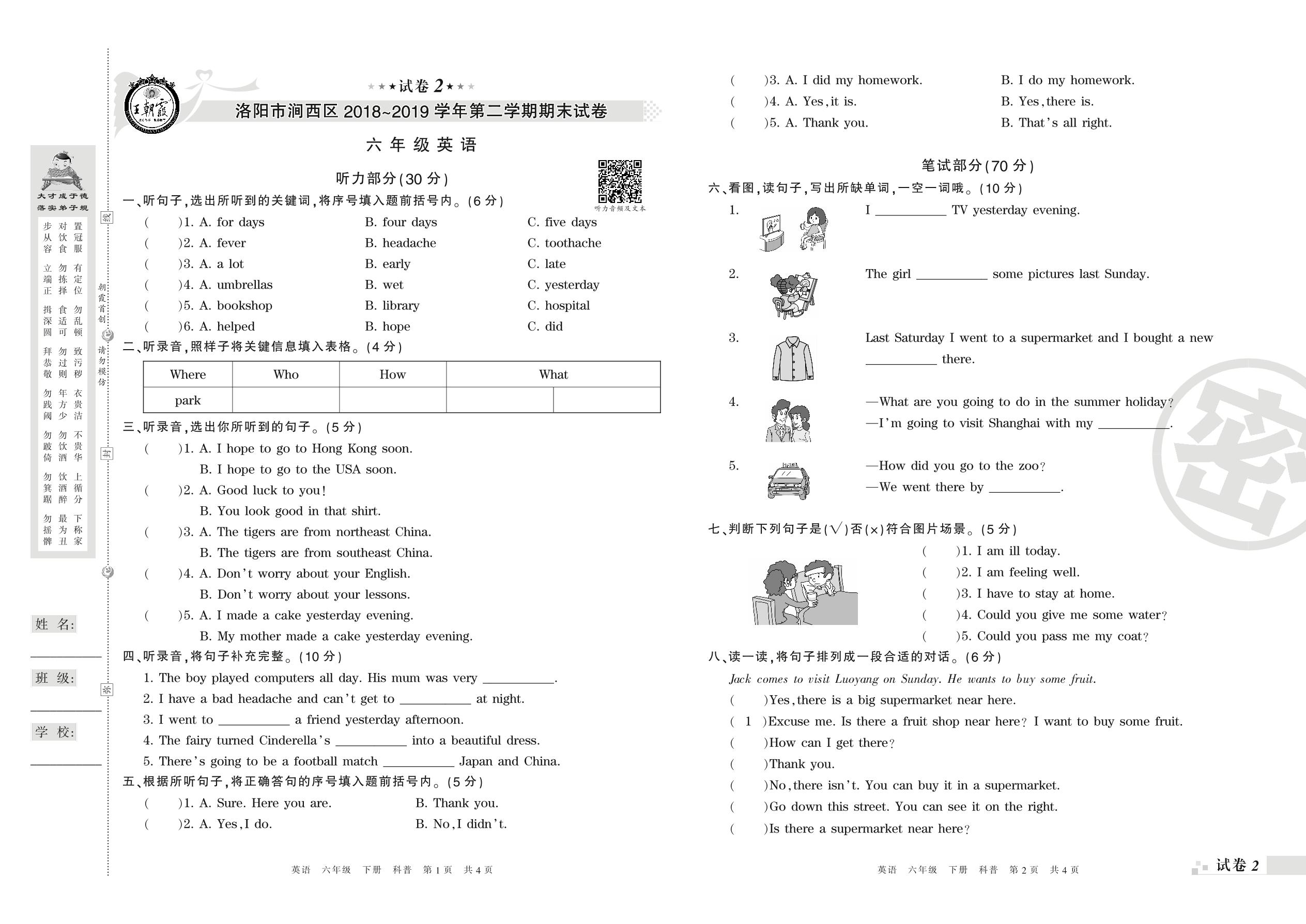 2018-2019学年第二学期洛阳市涧西区六年级英语试卷(科普版)_R210807163540【2】