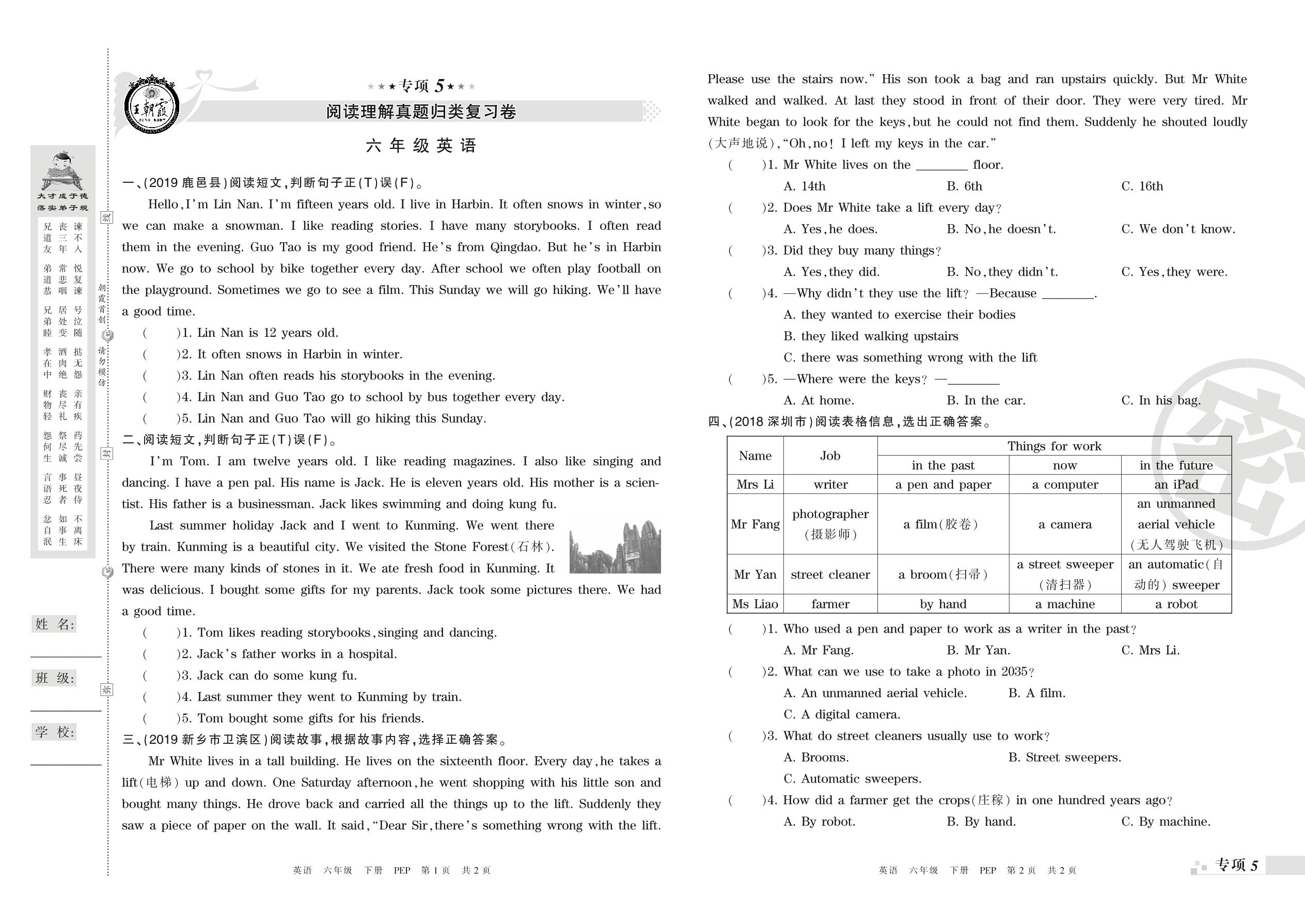 王朝霞期末专项卷——阅读理解、补全短文与书面表达真题归类复习卷六年级下册英语(PEP版)_R210807163559【0】
