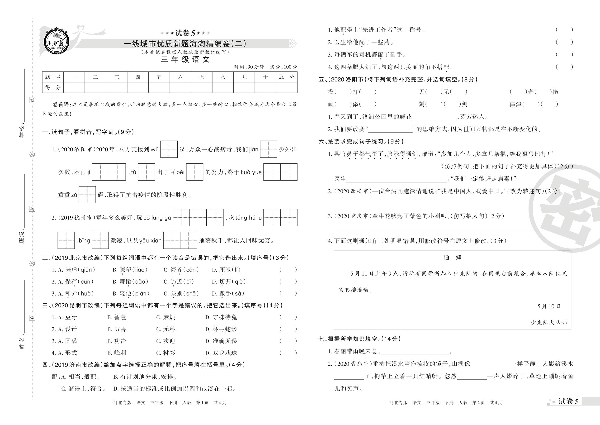 王朝霞海淘期末精编卷三年级下册语文(人教版)_R21080184034【5】