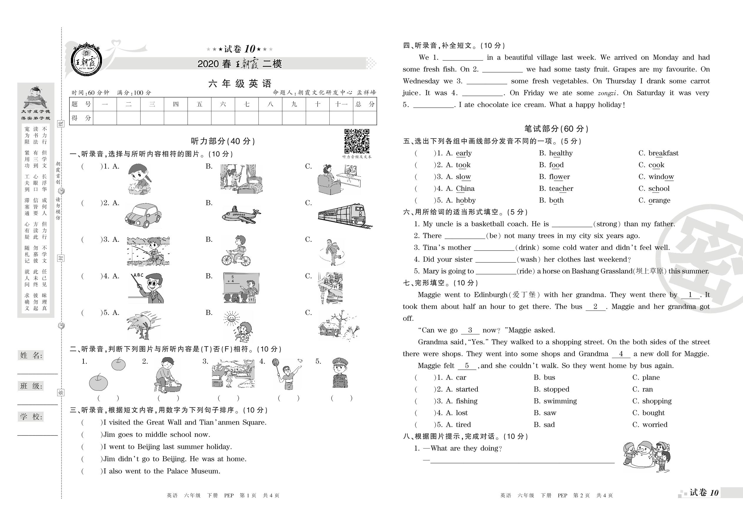 王朝霞期末模拟卷六年级下册英语(PEP版)_R210807163659【10】