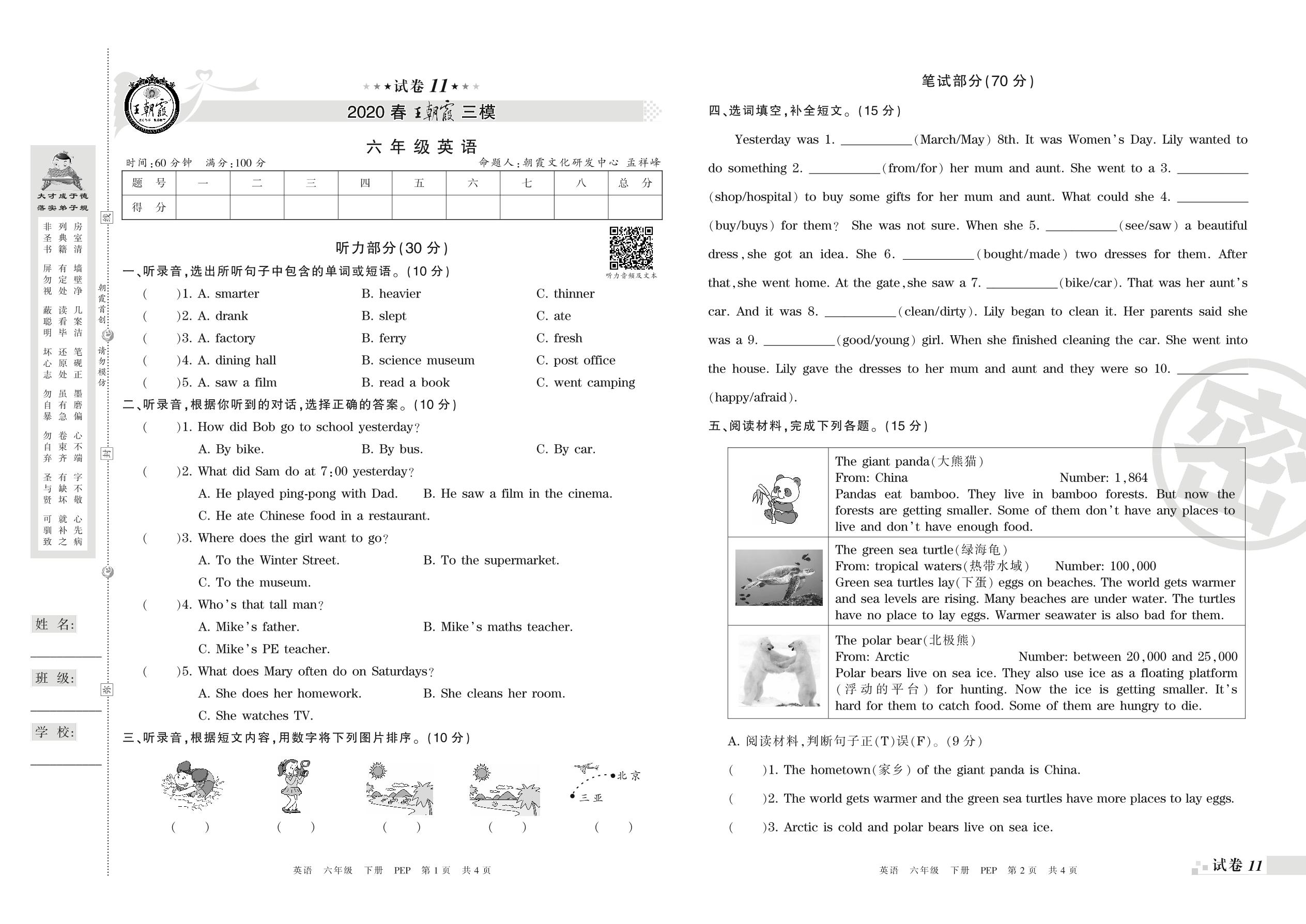 王朝霞期末模拟卷六年级下册英语(PEP版)_R210807163706【11】