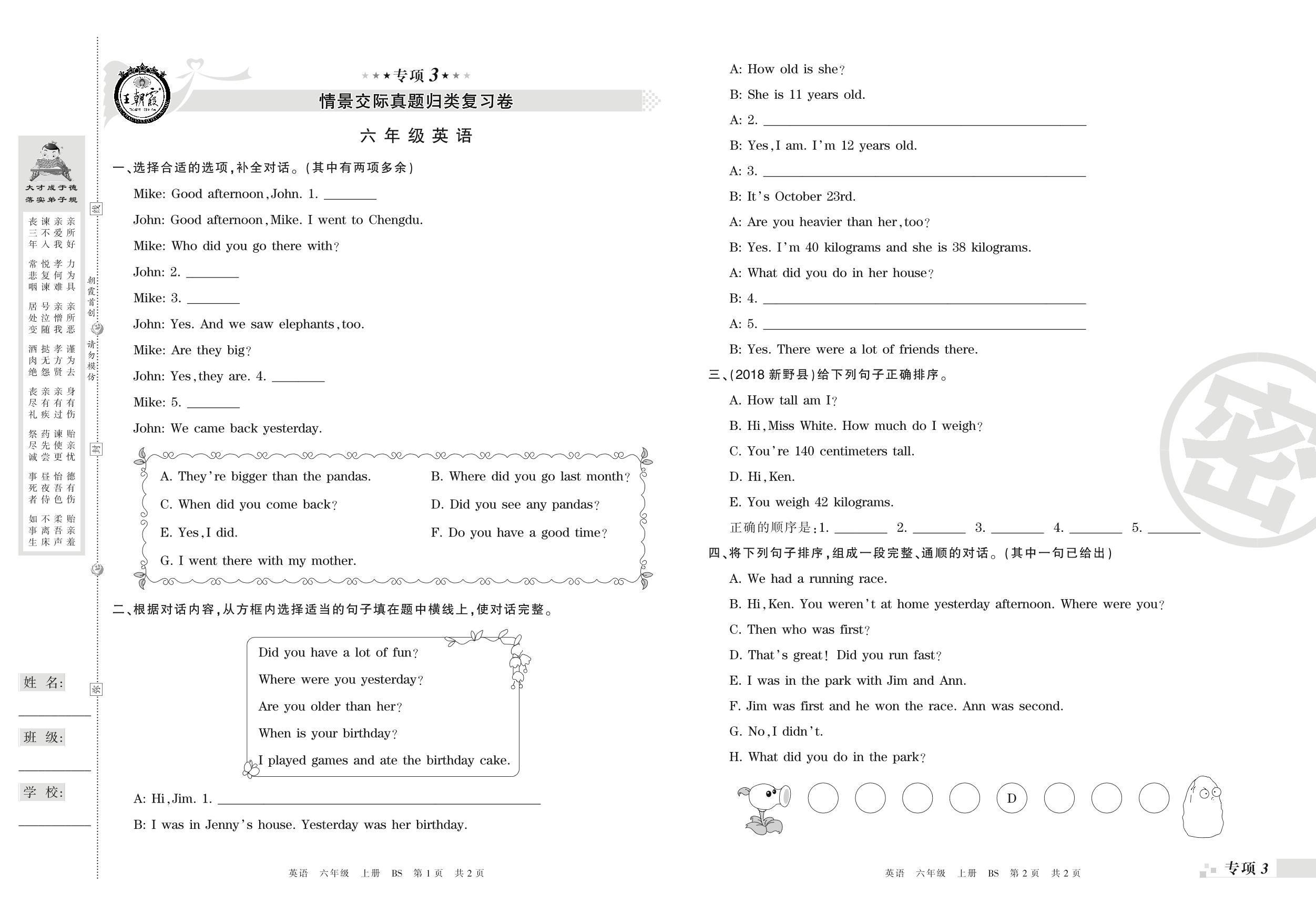 王朝霞期末专项卷——情景交际、阅读理解与写作真题归类复习六年级上册英语(北师版)_R210807163728【0】