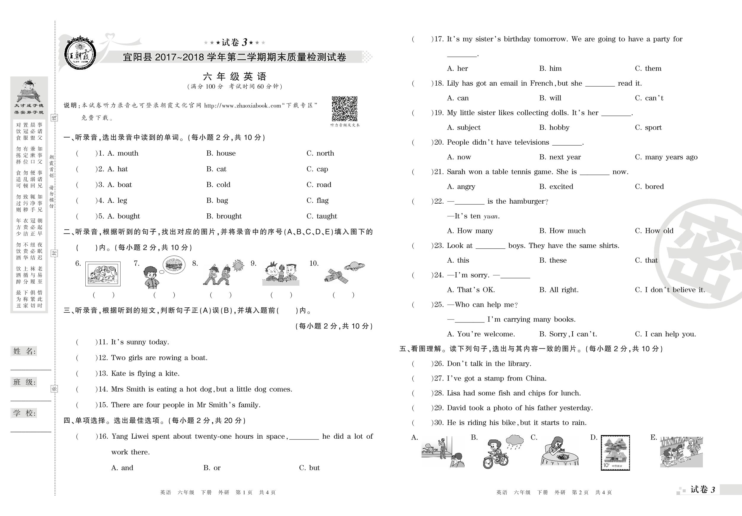 2017-2018学年第二学期洛阳市宜阳县六年级英语试卷(外研版)【3】
