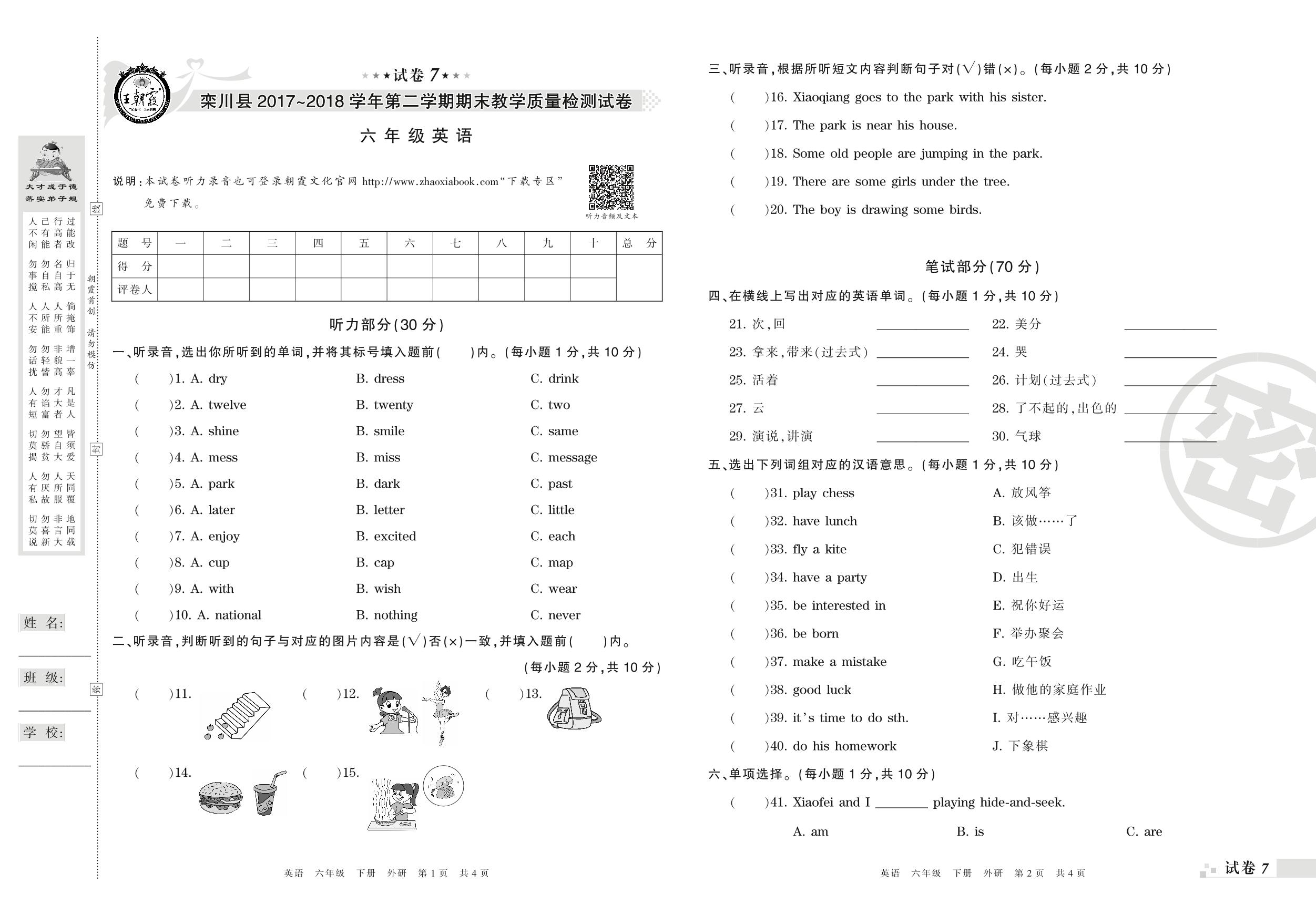 2017-2018学年第二学期洛阳市栾川县六年级英语试卷(外研版)【7】