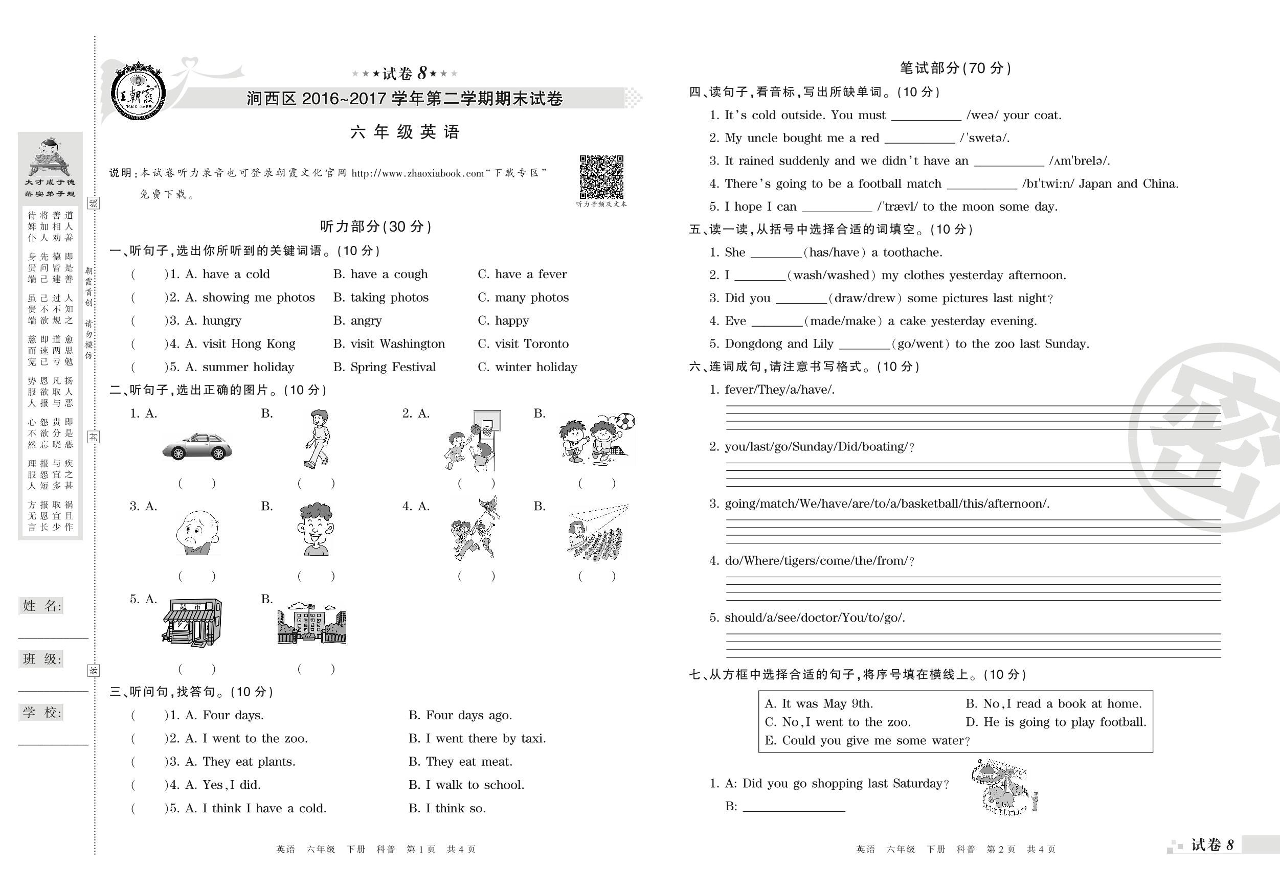 2016-2017学年第二学期洛阳市涧西区六年级英语试卷(科普版)【8】