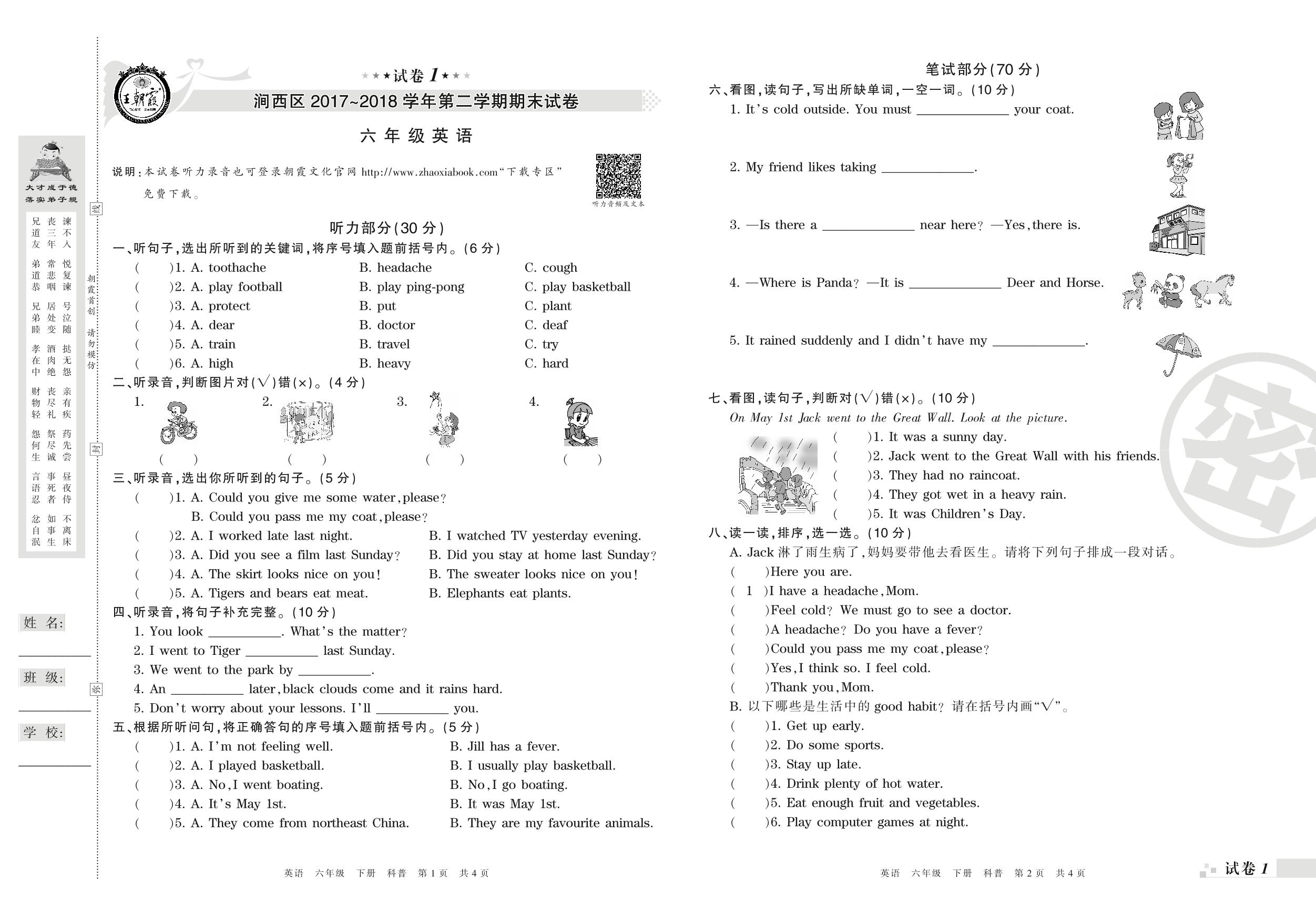 2017-2018学年第二学期洛阳市涧西区六年级英语试卷(科普版)【1】