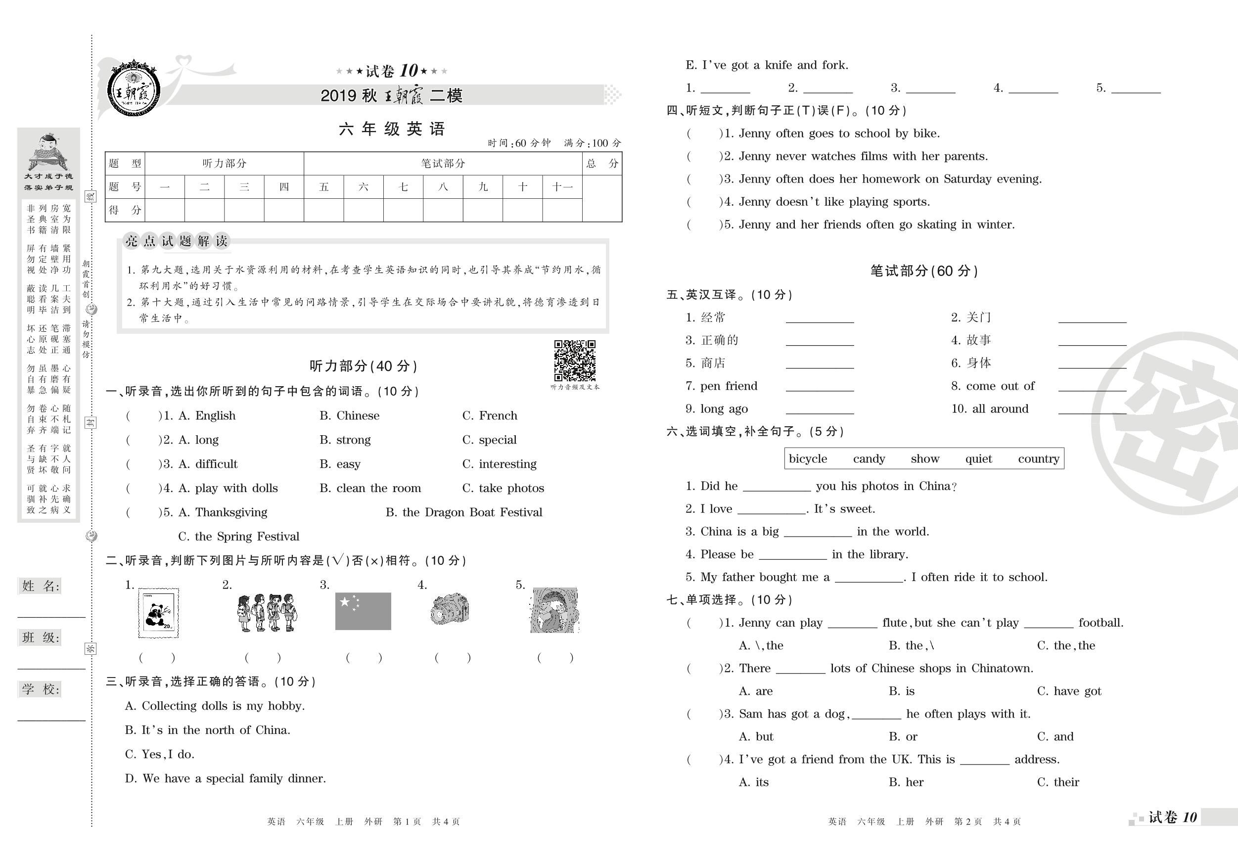 王朝霞期末模拟卷六年级上册英语(外研版)_R210807164218【10】