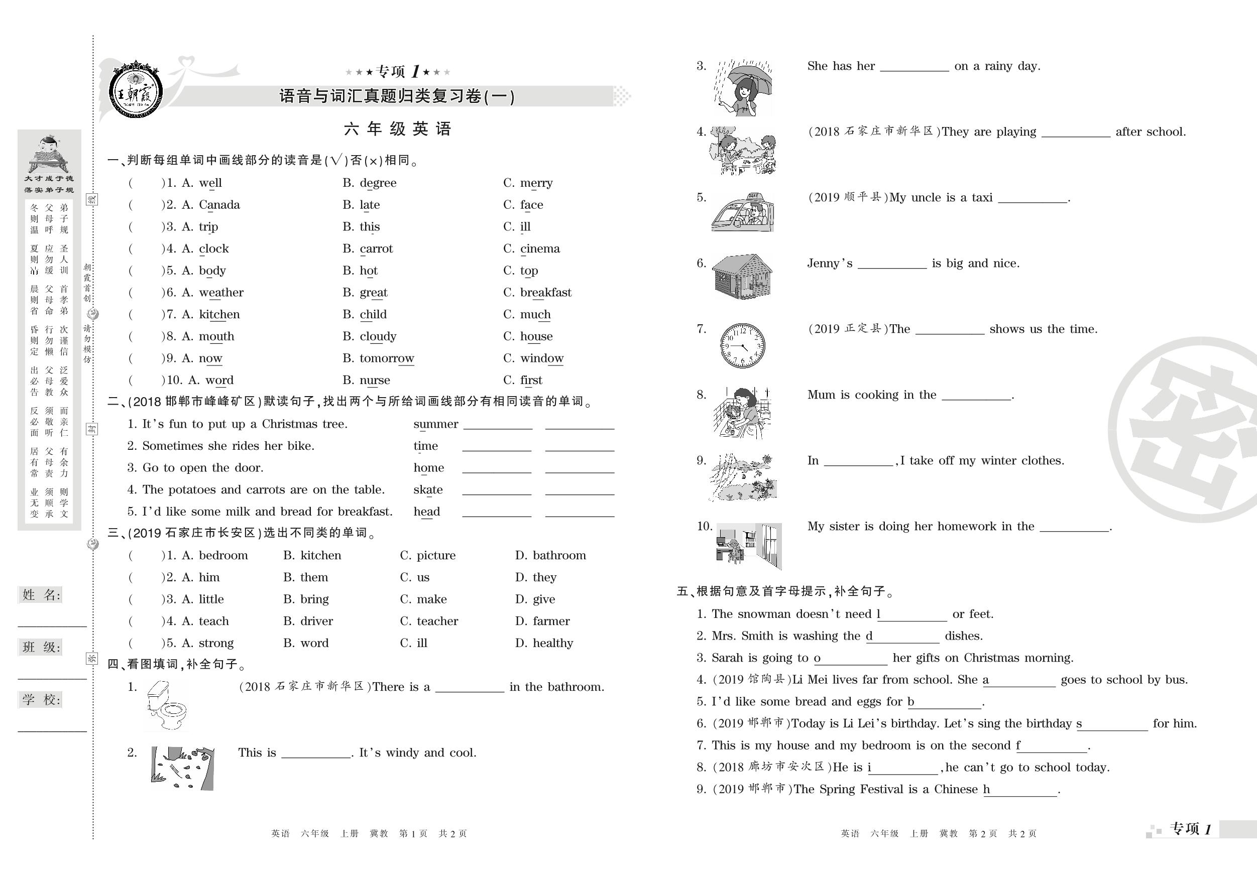 王朝霞期末专项卷——语音与词汇真题归类复习六年级上册英语(冀教版)_R210807164221【0】
