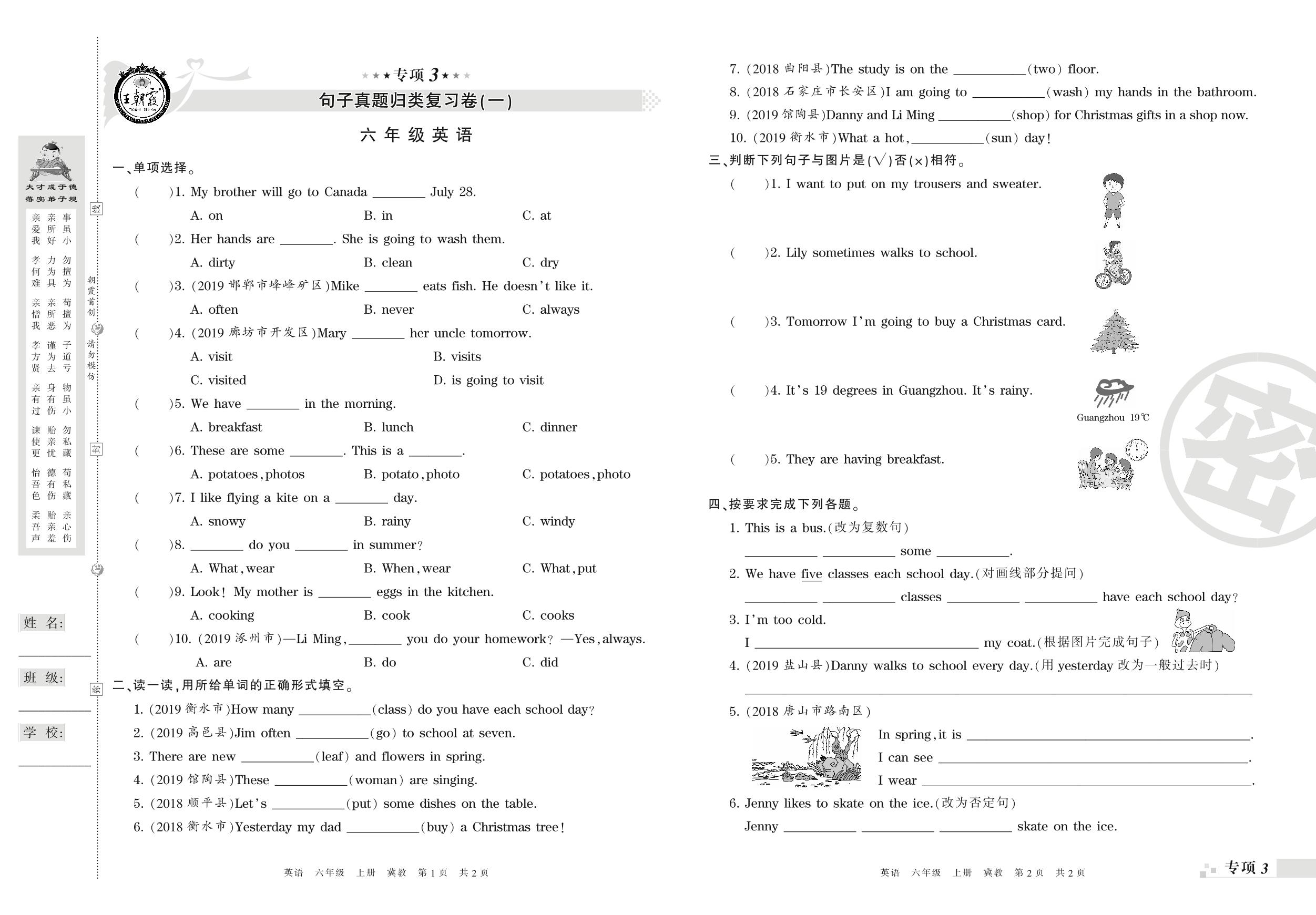 王朝霞期末专项卷——句子真题归类复习六年级上册英语(冀教版)_R210807164224【0】