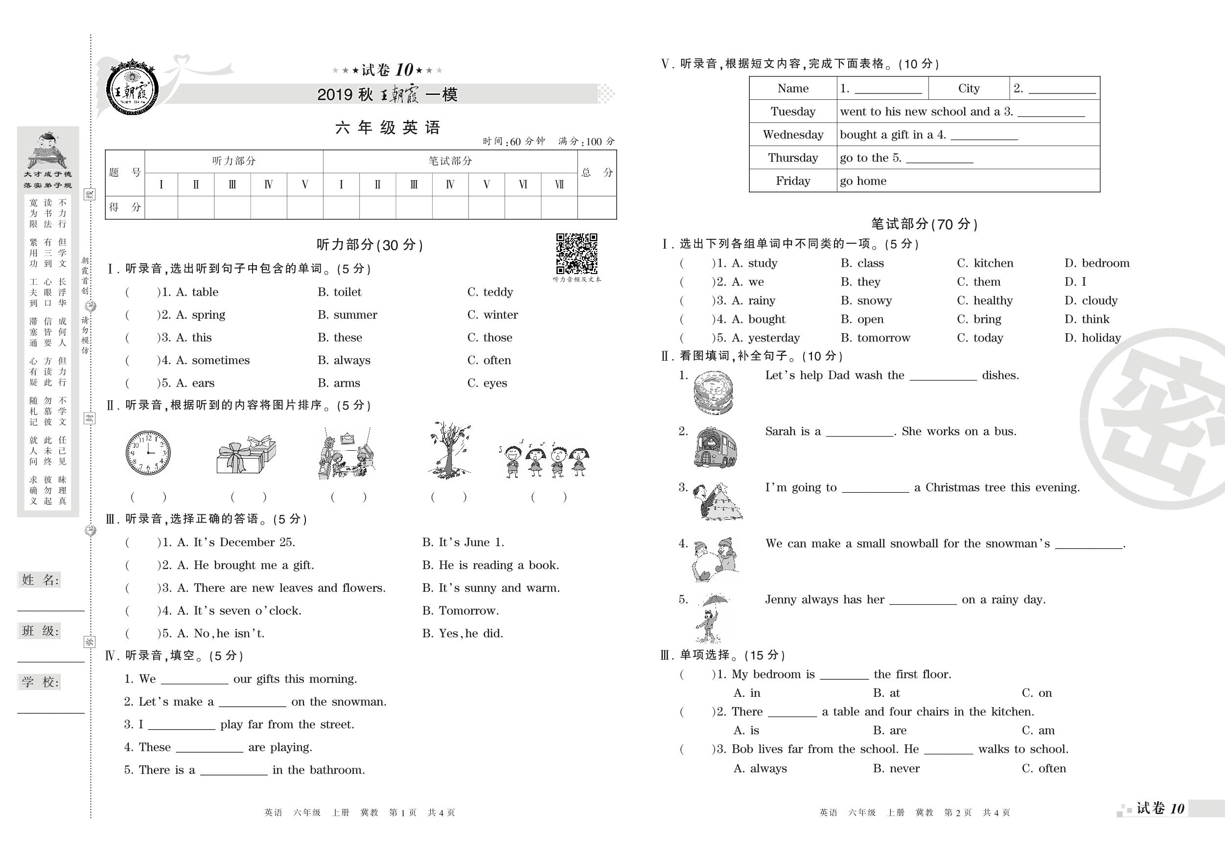 王朝霞期末模拟卷六年级上册英语(冀教版)_R210807164304【10】