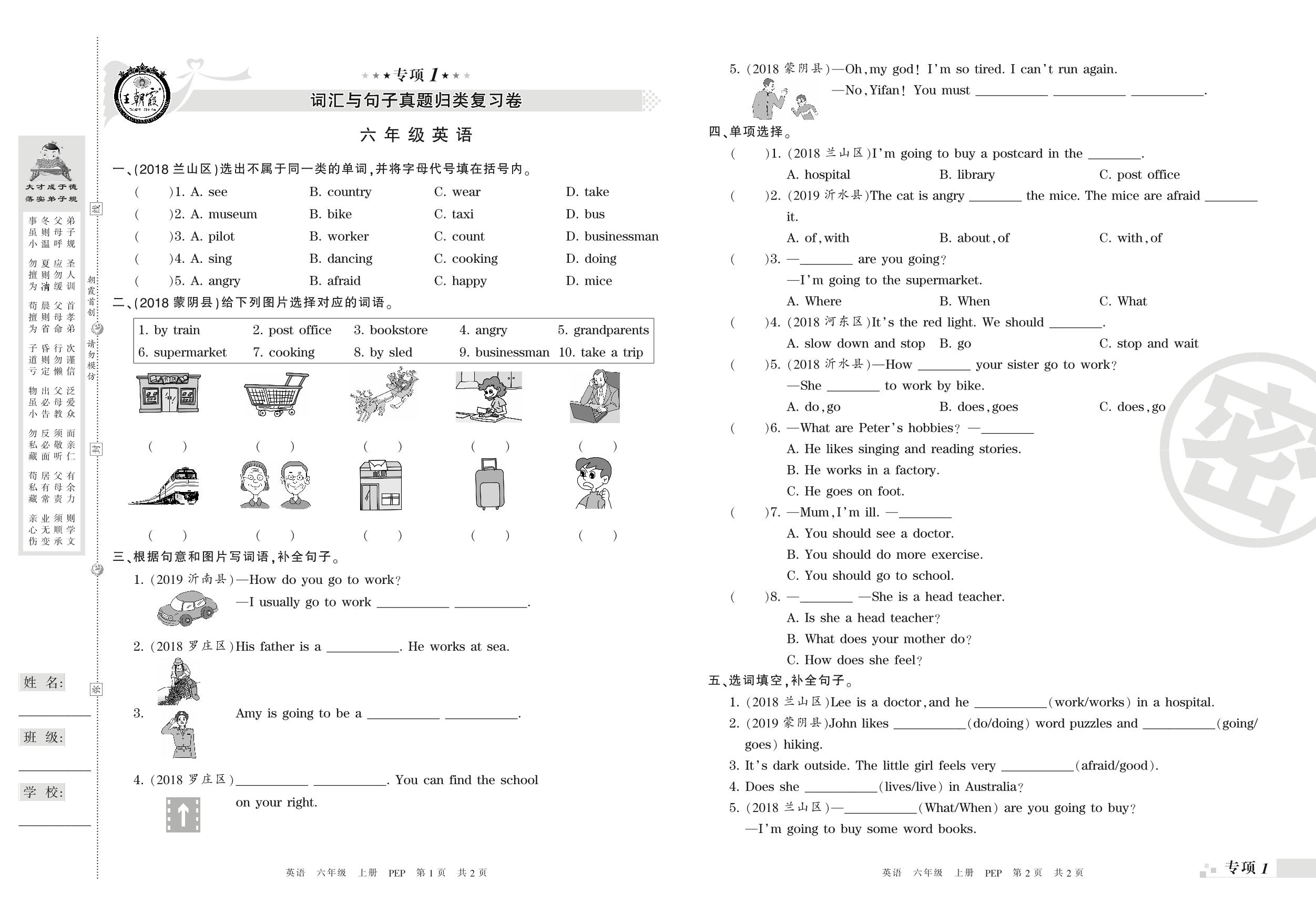 王朝霞期末专项卷——词汇与句子、阅读理解真题归类复习六年级上册英语(PEP版)_R210807164358【0】