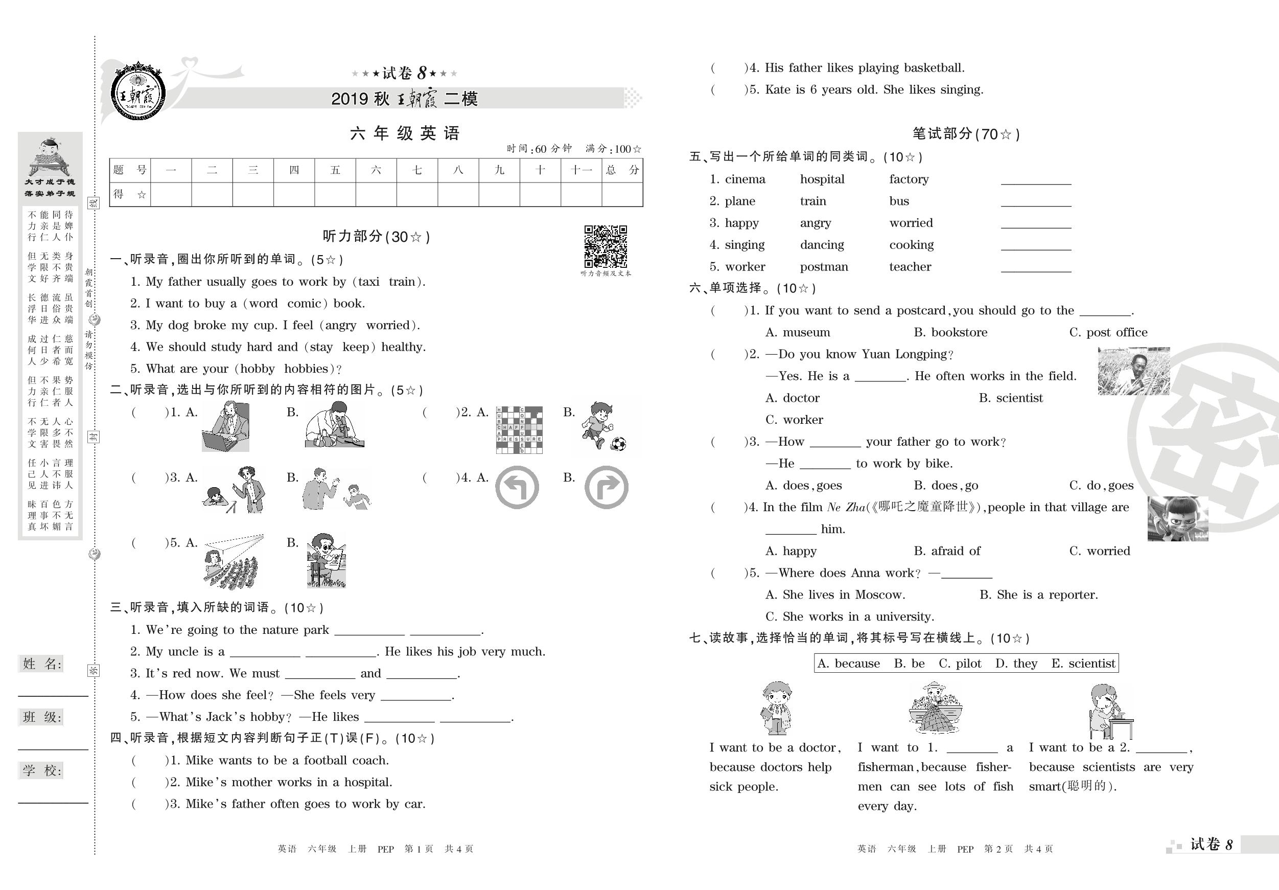 王朝霞期末模拟卷六年级上册英语(PEP版)_R210807164427【8】