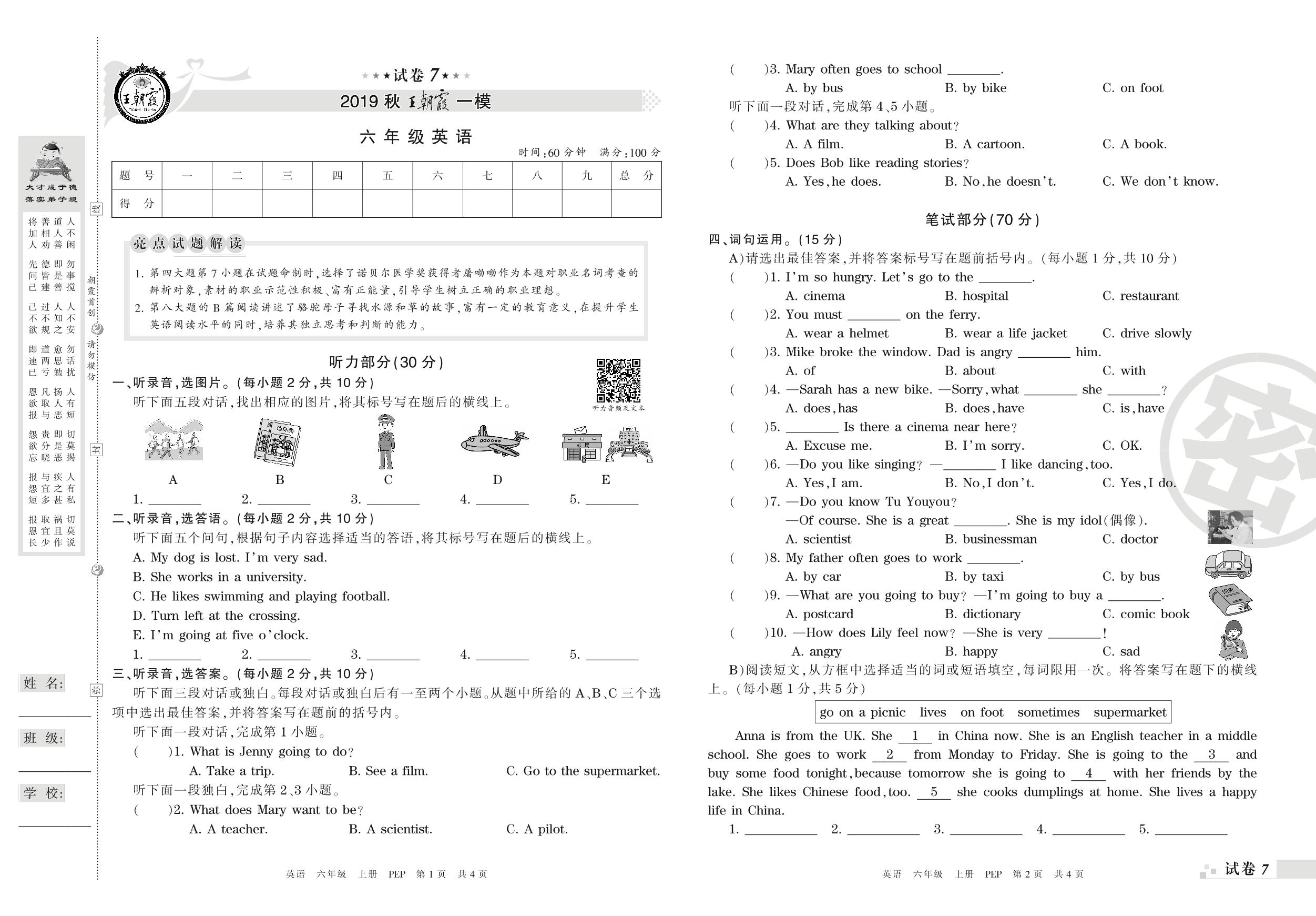 王朝霞期末模拟卷六年级上册英语(PEP版)_R210807164505【7】