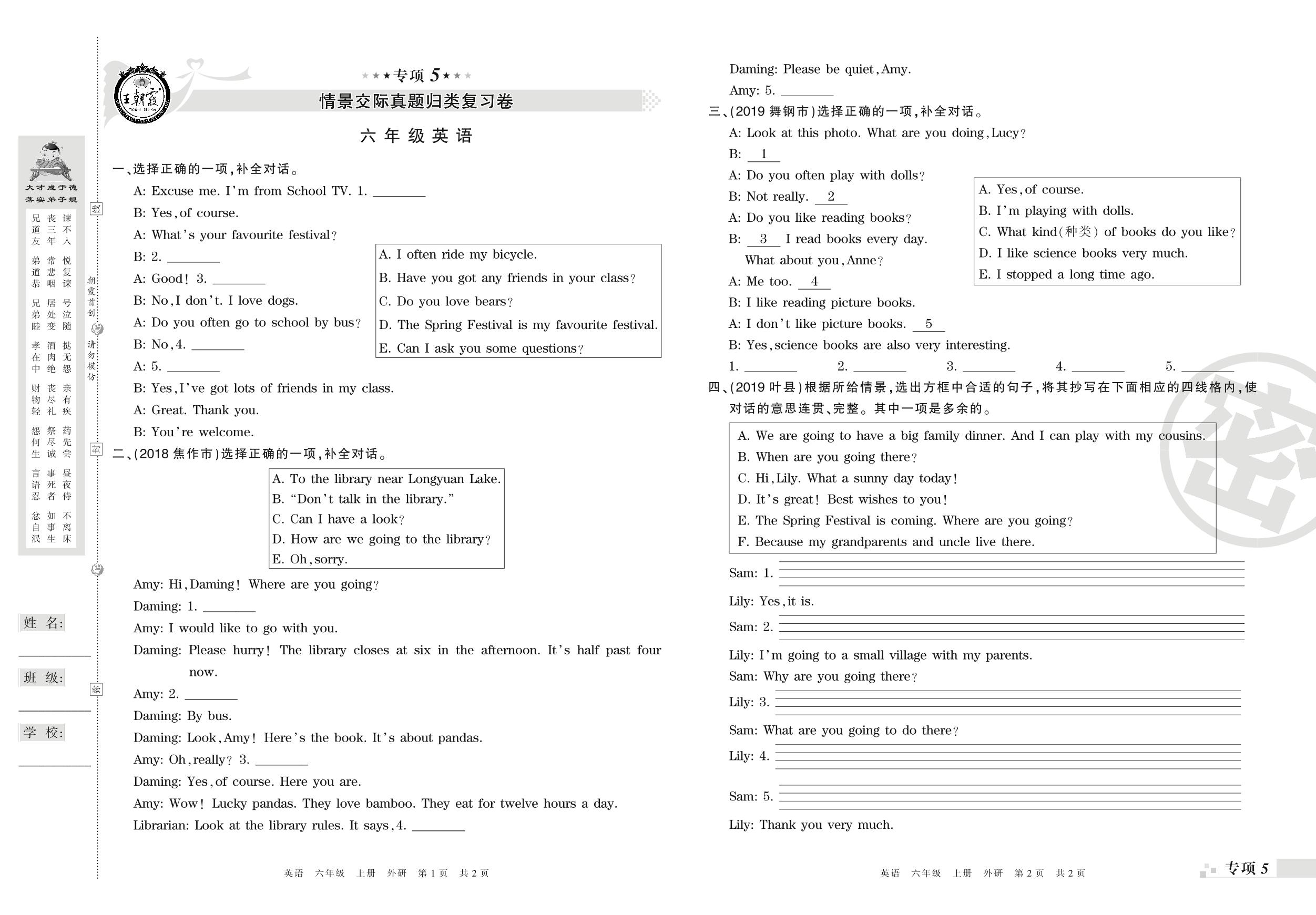 王朝霞期末专项卷——情景交际、阅读理解真题归类复习六年级上册英语(外研版)_R210807164522【0】