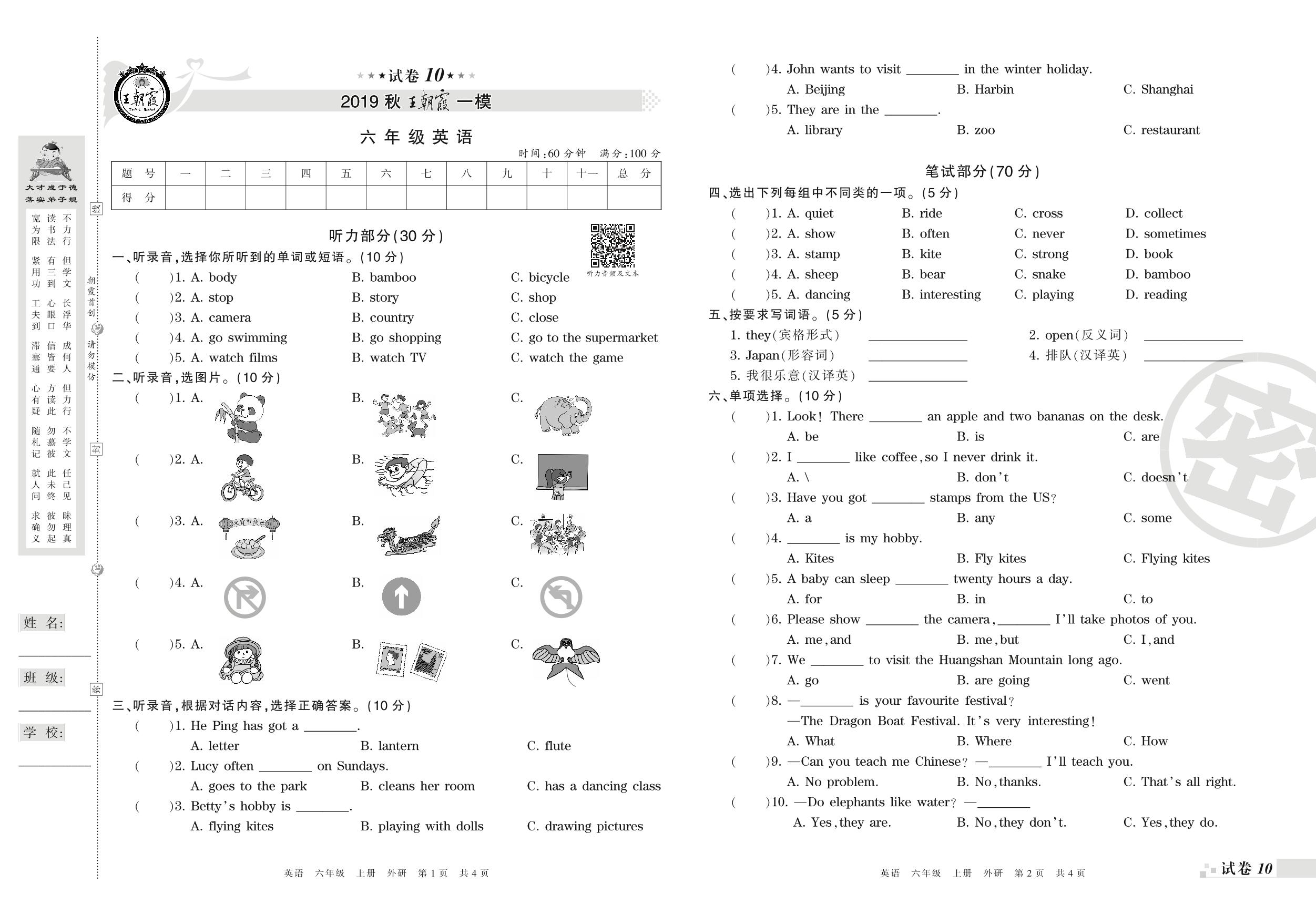 王朝霞期末模拟卷六年级上册英语(外研版)_R210807164554【10】