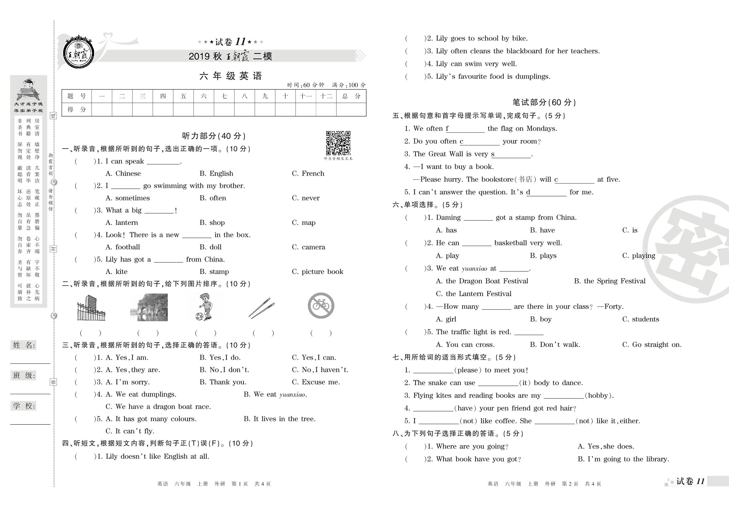 王朝霞期末模拟卷六年级上册英语(外研版)_R210807164558【11】