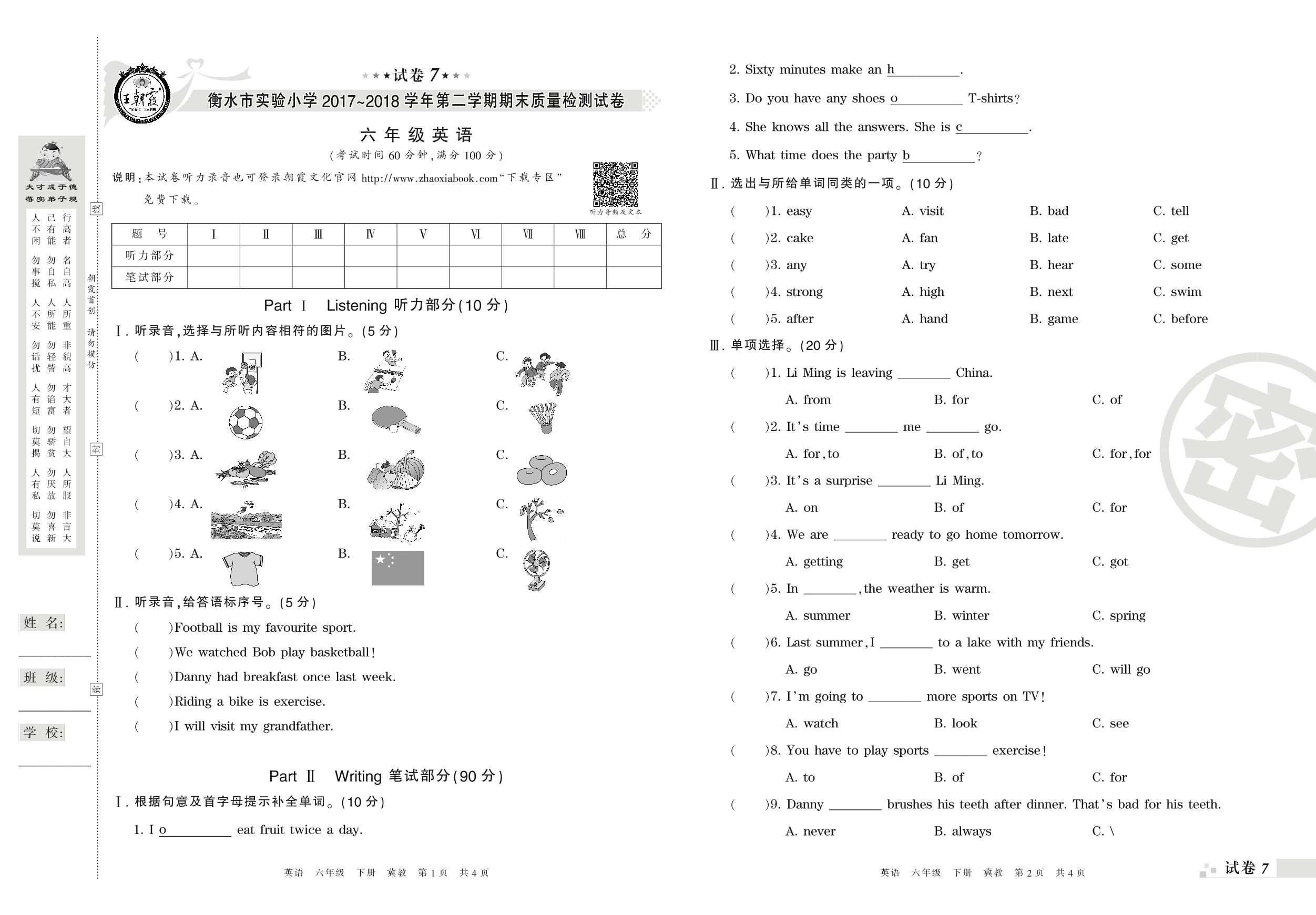 2017-2018学年第二学期衡水市实验小学六年级英语试卷(冀教版)【7】