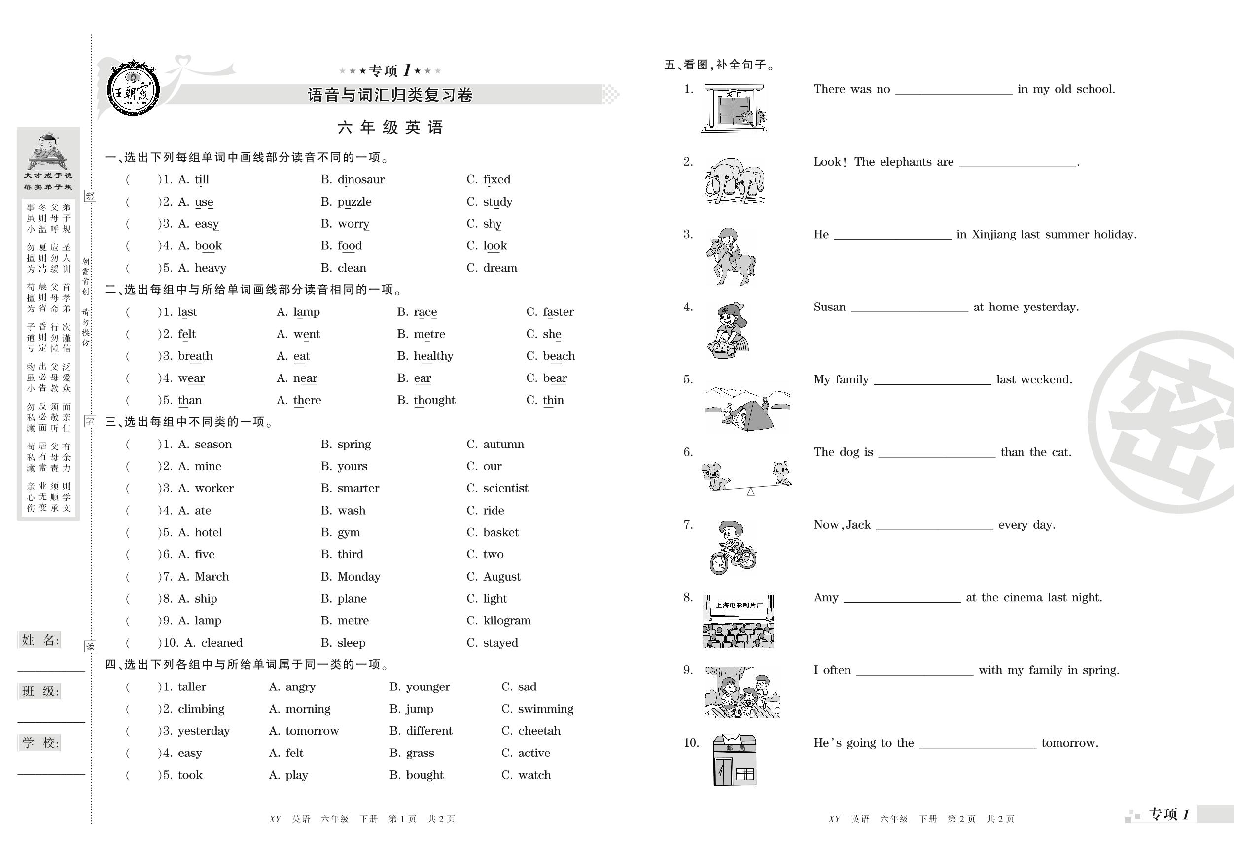 王朝霞期末专项卷——词汇、句子真题归类复习卷六年级下册英语(PEP版)_R210807164830【0】