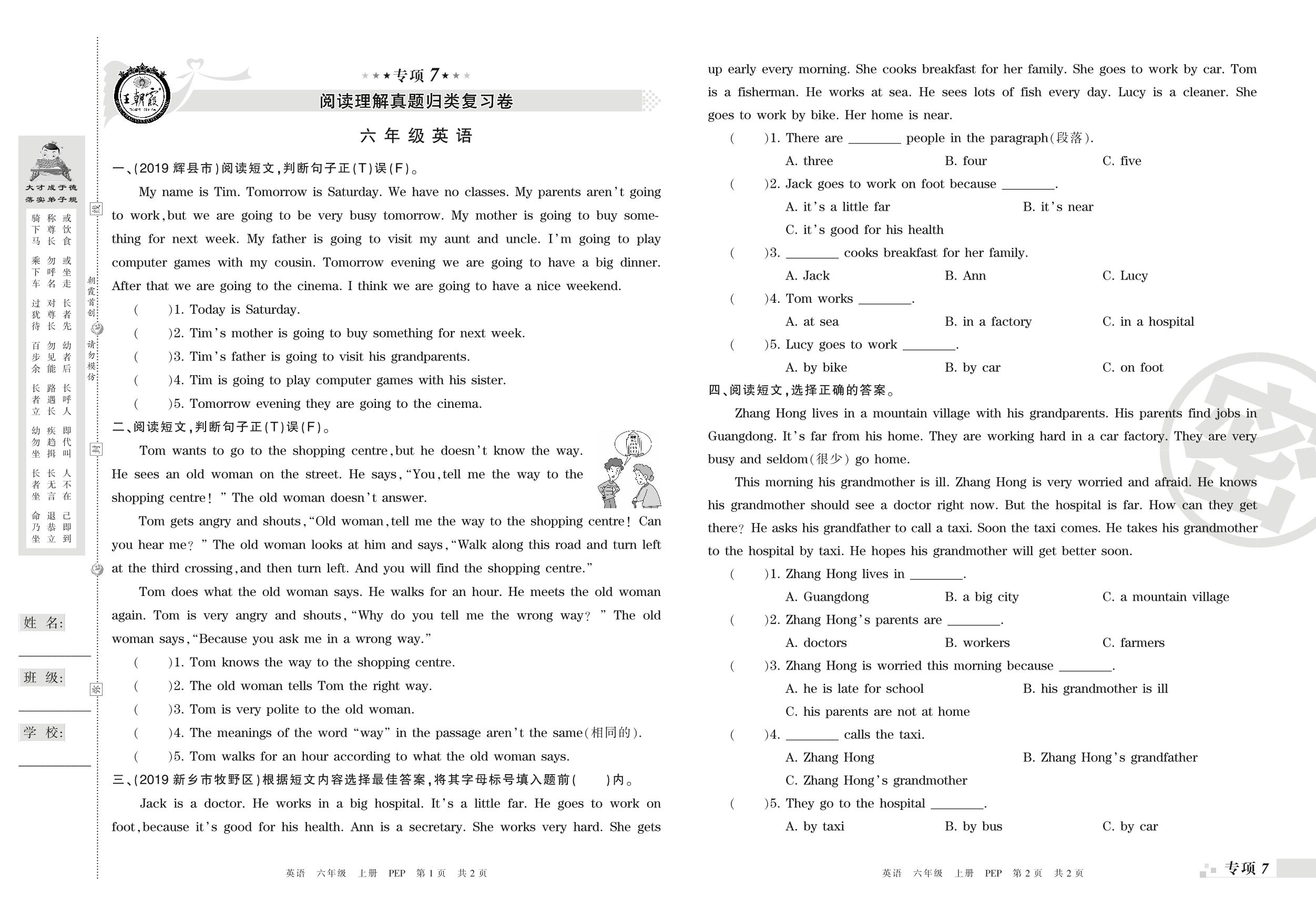 王朝霞期末专项卷——阅读理解、写作真题归类复习六年级上册英语(PEP版)_R210807164928【0】