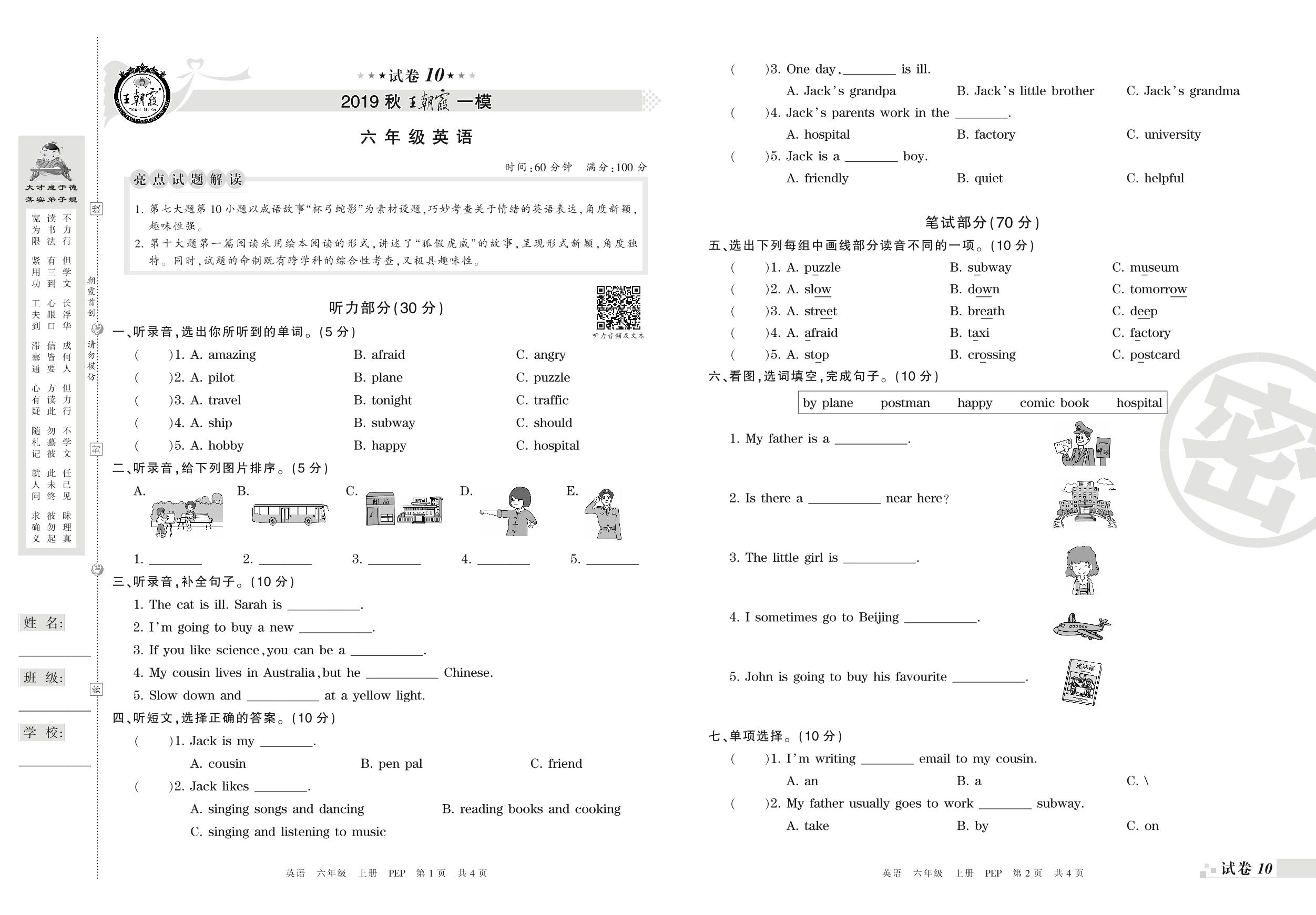 王朝霞期末模拟卷六年级上册英语(PEP版)_R210807165002【10】