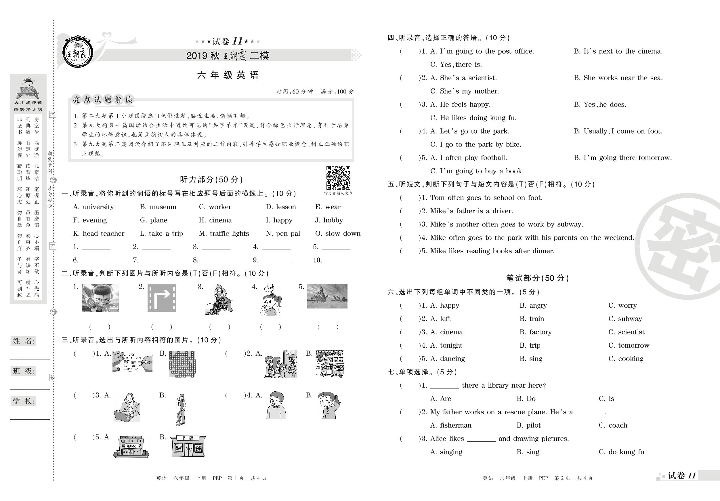 王朝霞期末模拟卷六年级上册英语(PEP版)_R210807165006【11】