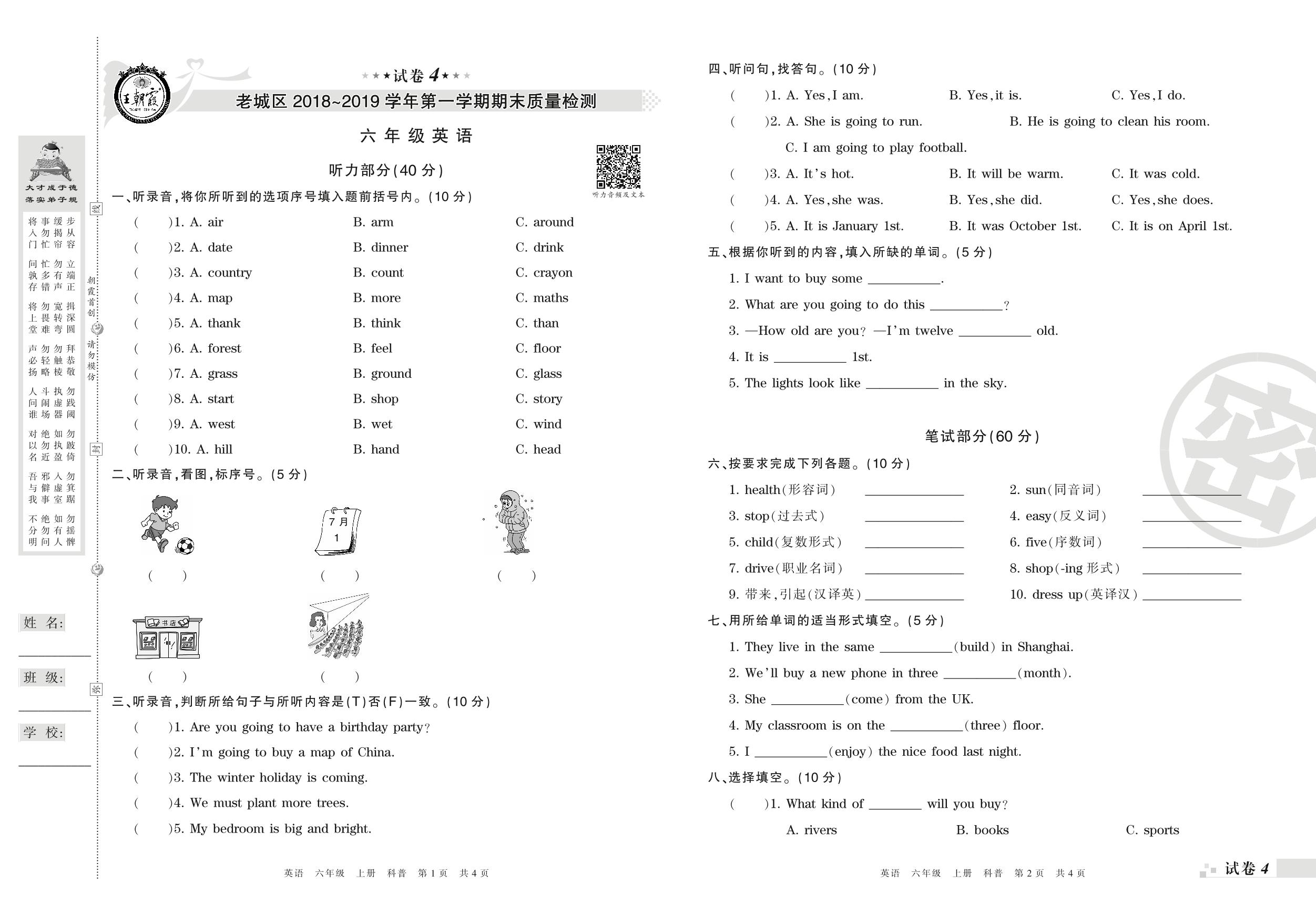 2018-2019学年第一学期洛阳市老城区六年级英语试卷(科普版)【4】