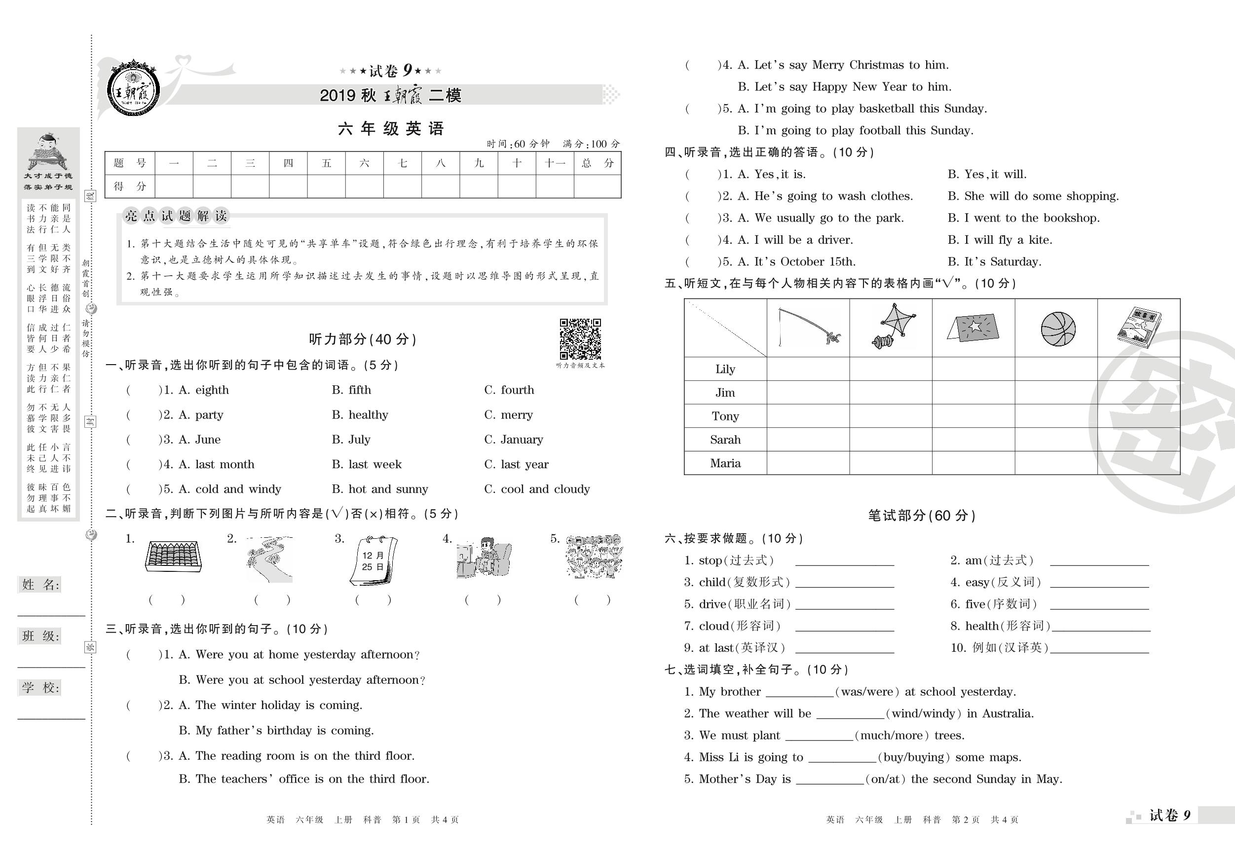 王朝霞期末模拟卷六年级上册英语(科普版)_R210807165110【9】