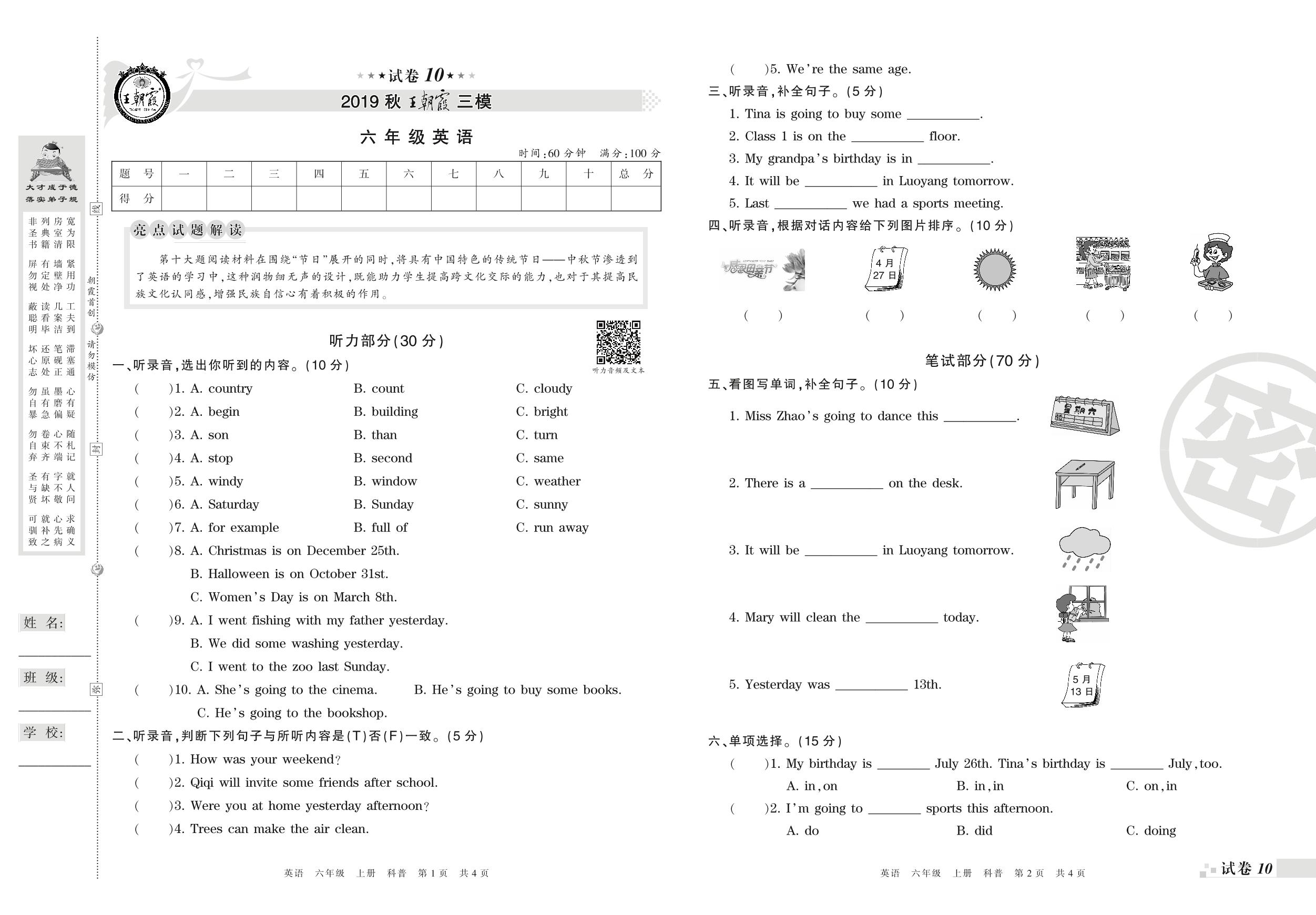 王朝霞期末模拟卷六年级上册英语(科普版)_R210807165115【10】