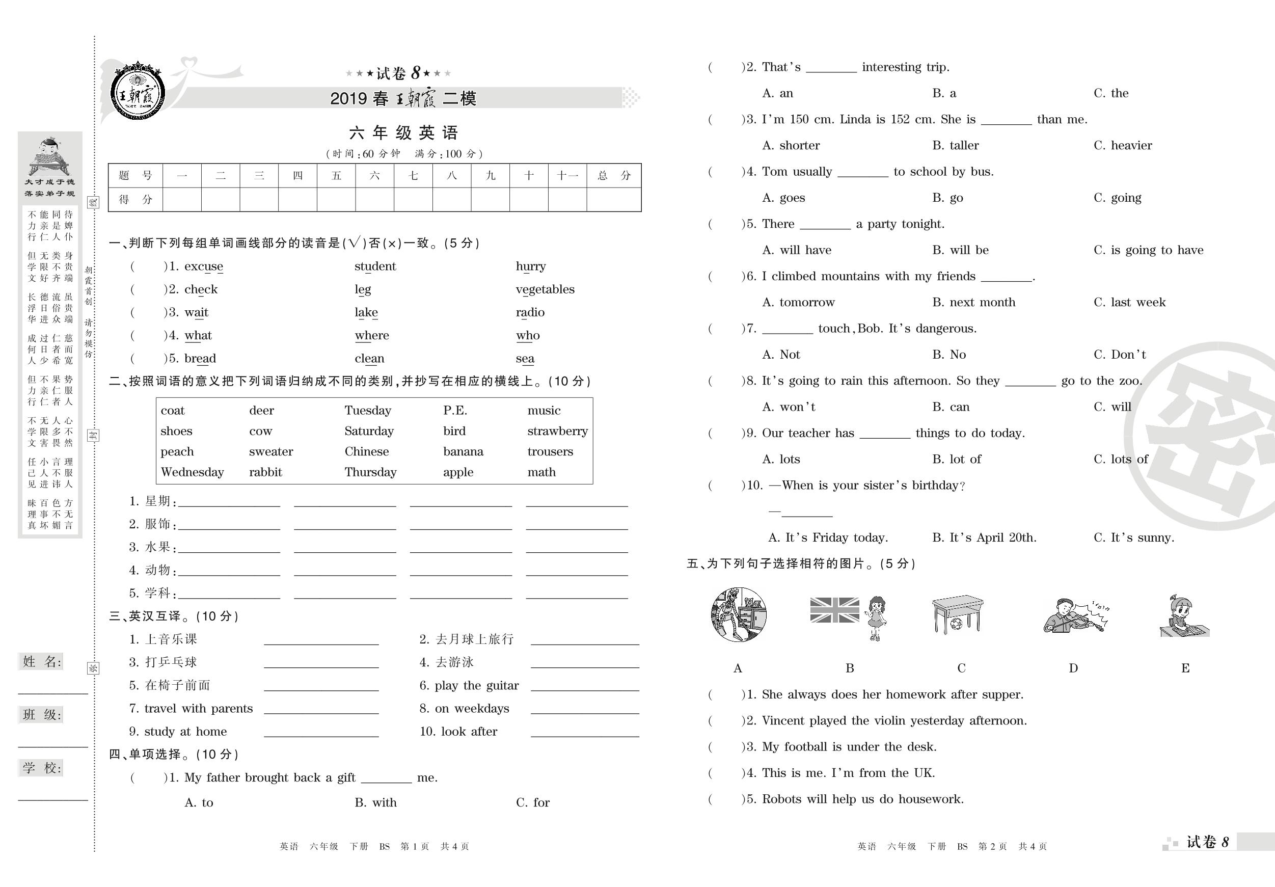 王朝霞期末模拟卷六年级下册英语(北师版)_R210807165246【8】
