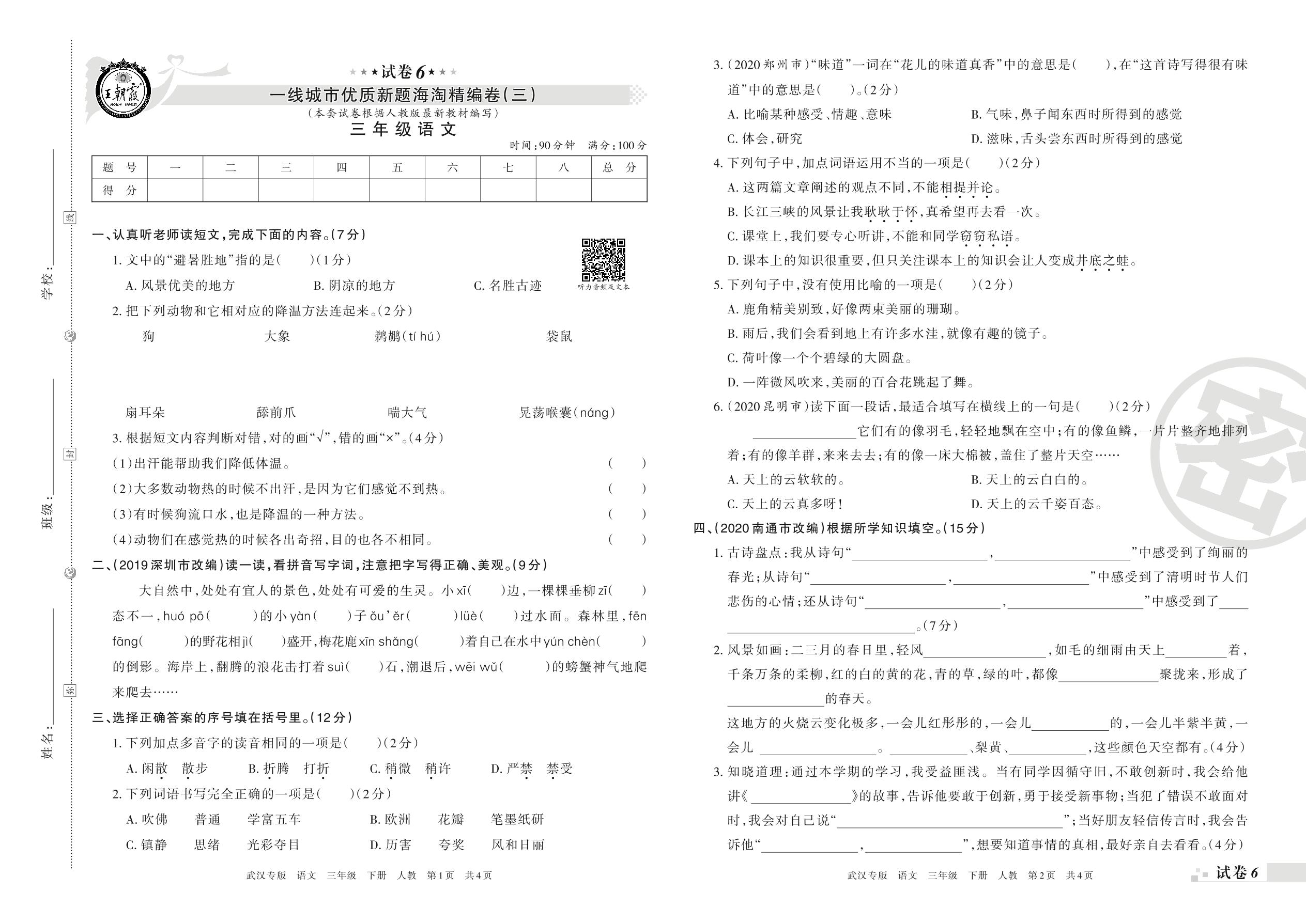 王朝霞海淘期末精编卷三年级下册语文(人教版)_R21080184311【6】