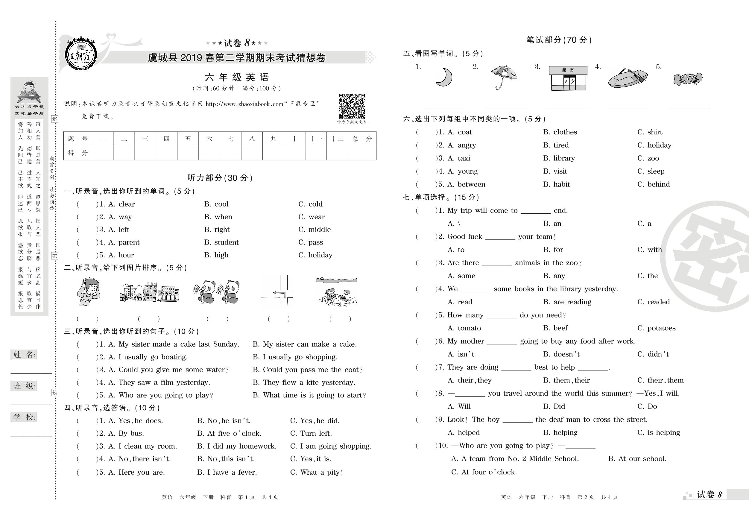 2018-2019学年第二学期商丘市虞城县猜想卷六年级英语试卷(科普版)【8】