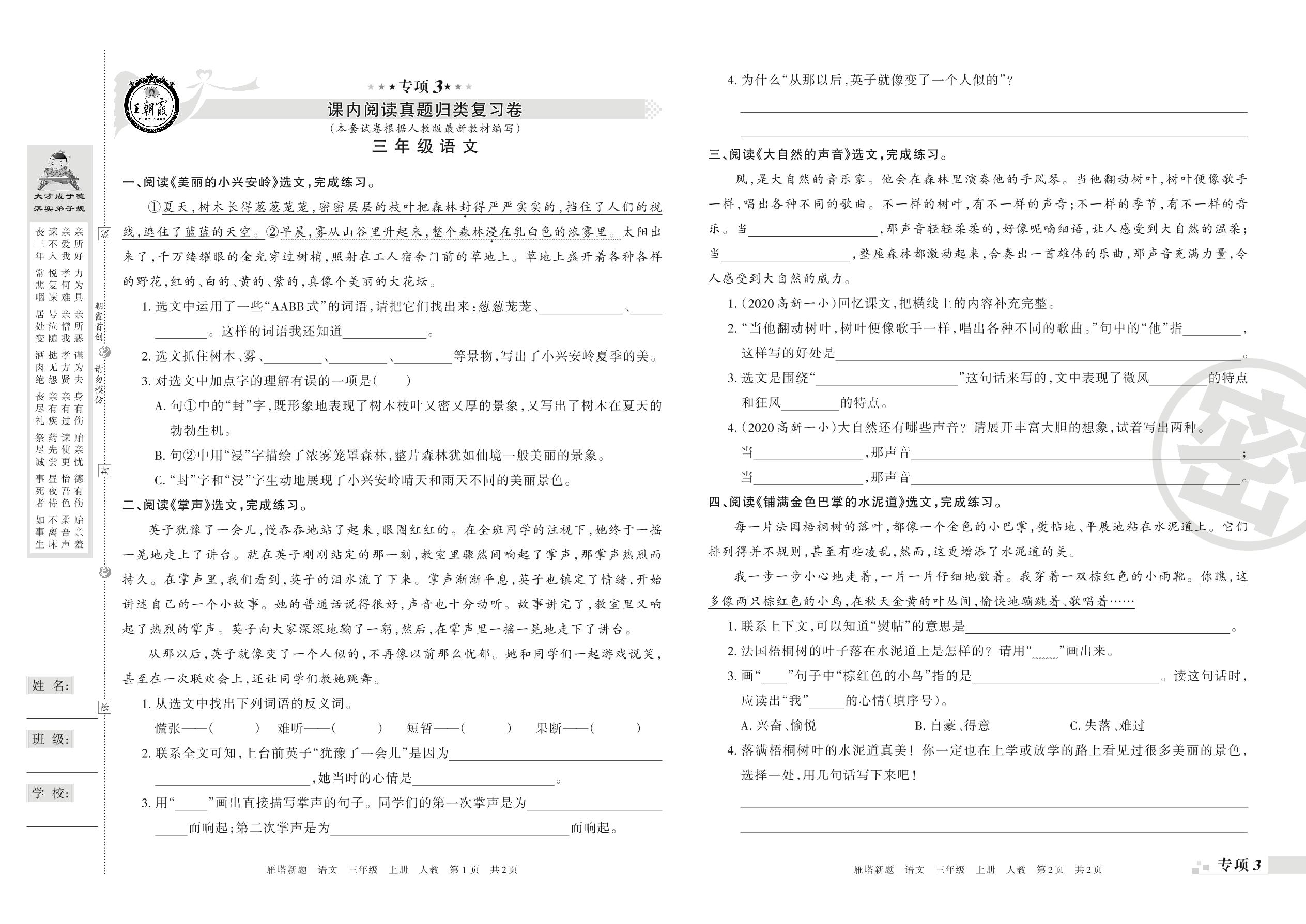 王朝霞期末专项卷——课内阅读、课外阅读真题归类复习三年级上册语文(人教版)_R21080184344【0】