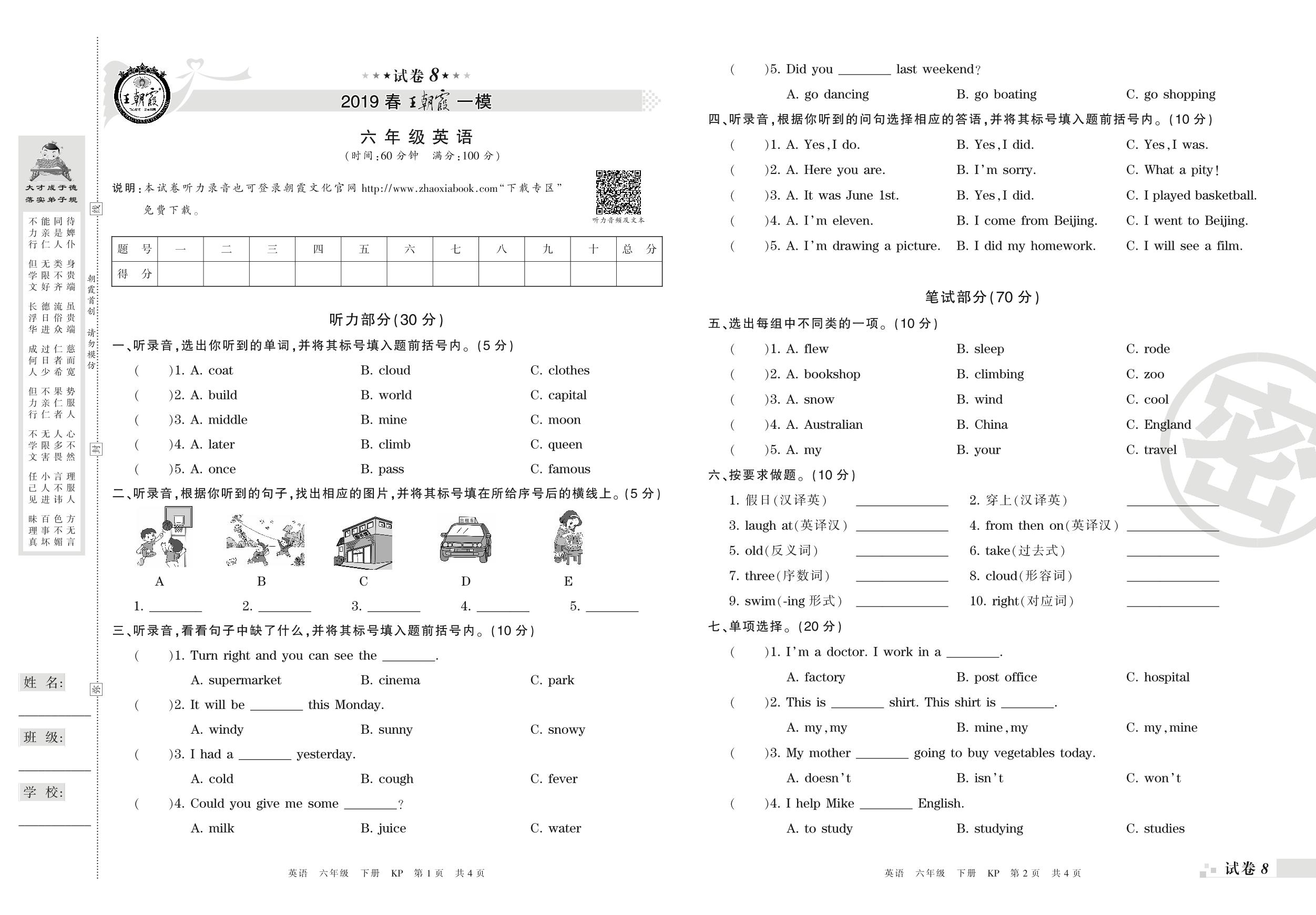 王朝霞期末模拟卷六年级下册英语(科普版)_R210807165818【8】