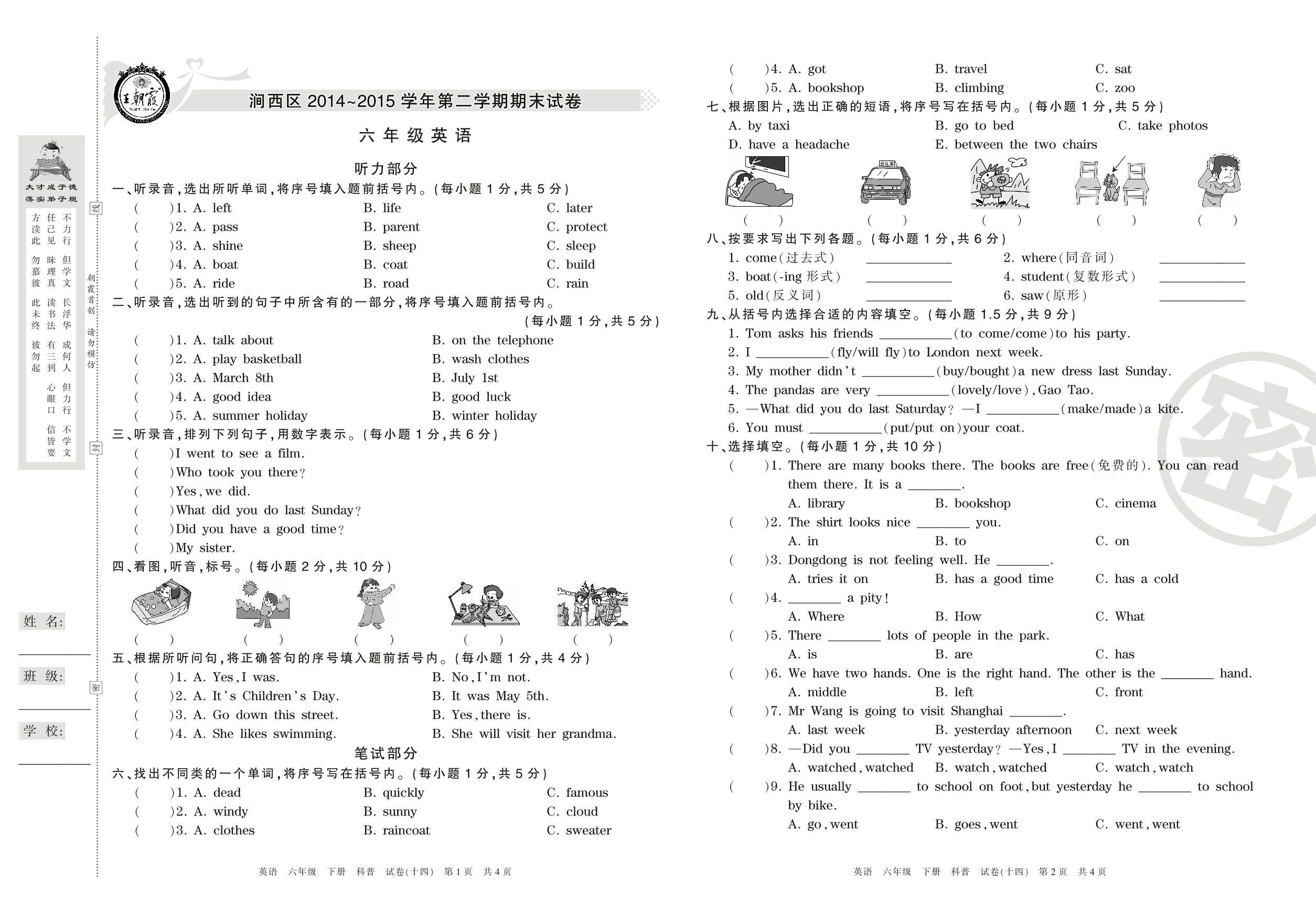 2014-2015学年第二学期洛阳市涧西区六年级英语试卷(科普版)【14】