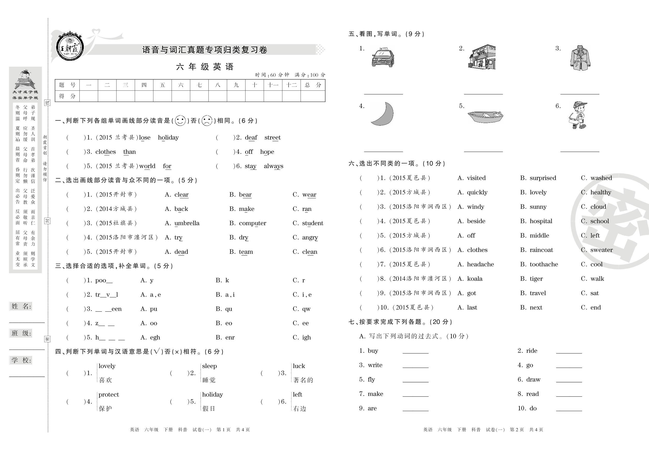 王朝霞期末专项卷六年级下册英语(科普版)_R210807165911【1】