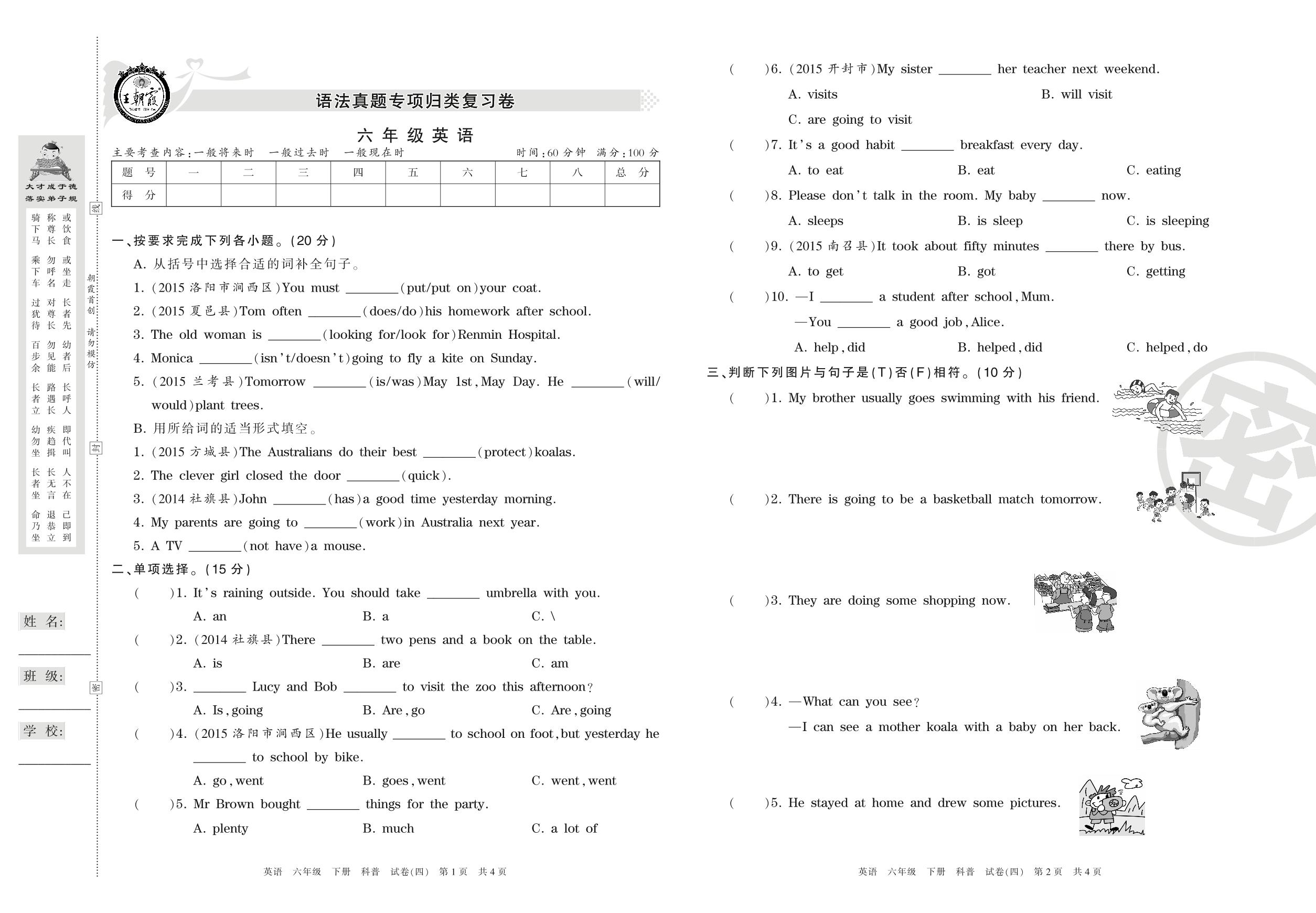 王朝霞期末专项卷六年级下册英语(科普版)_R210807165924【4】