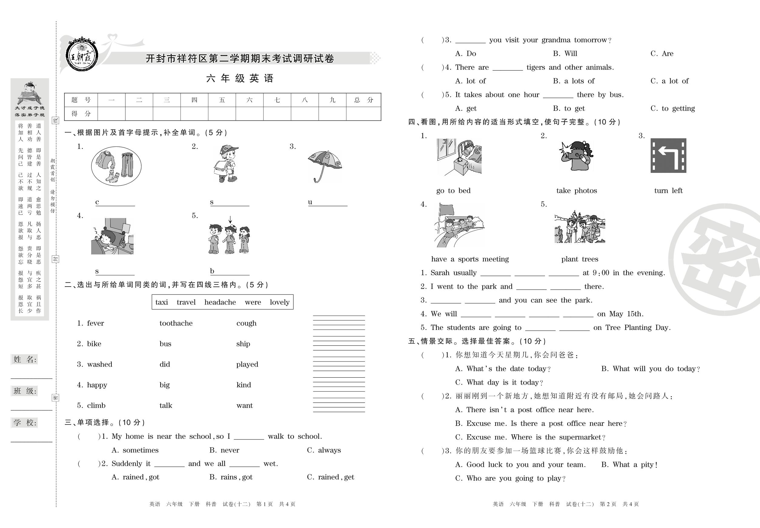2015-2016学年第二学期开封市祥符区六年级英语试卷(科普版)【12】