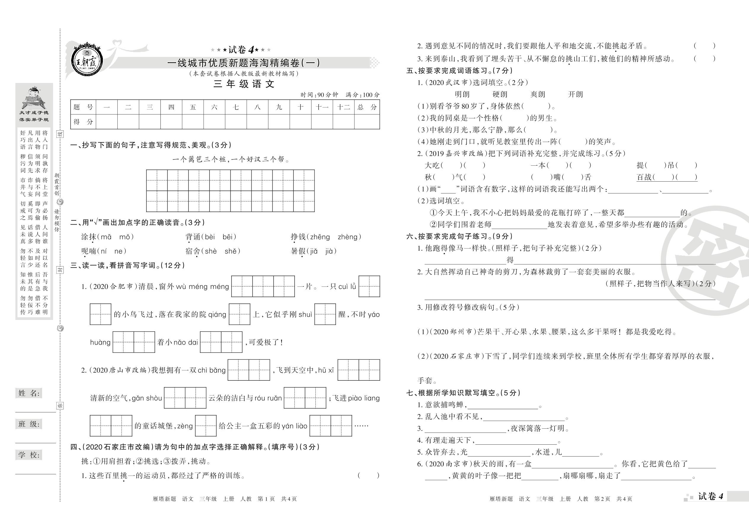 王朝霞海淘期末精编卷三年级上册语文(人教版)【4】