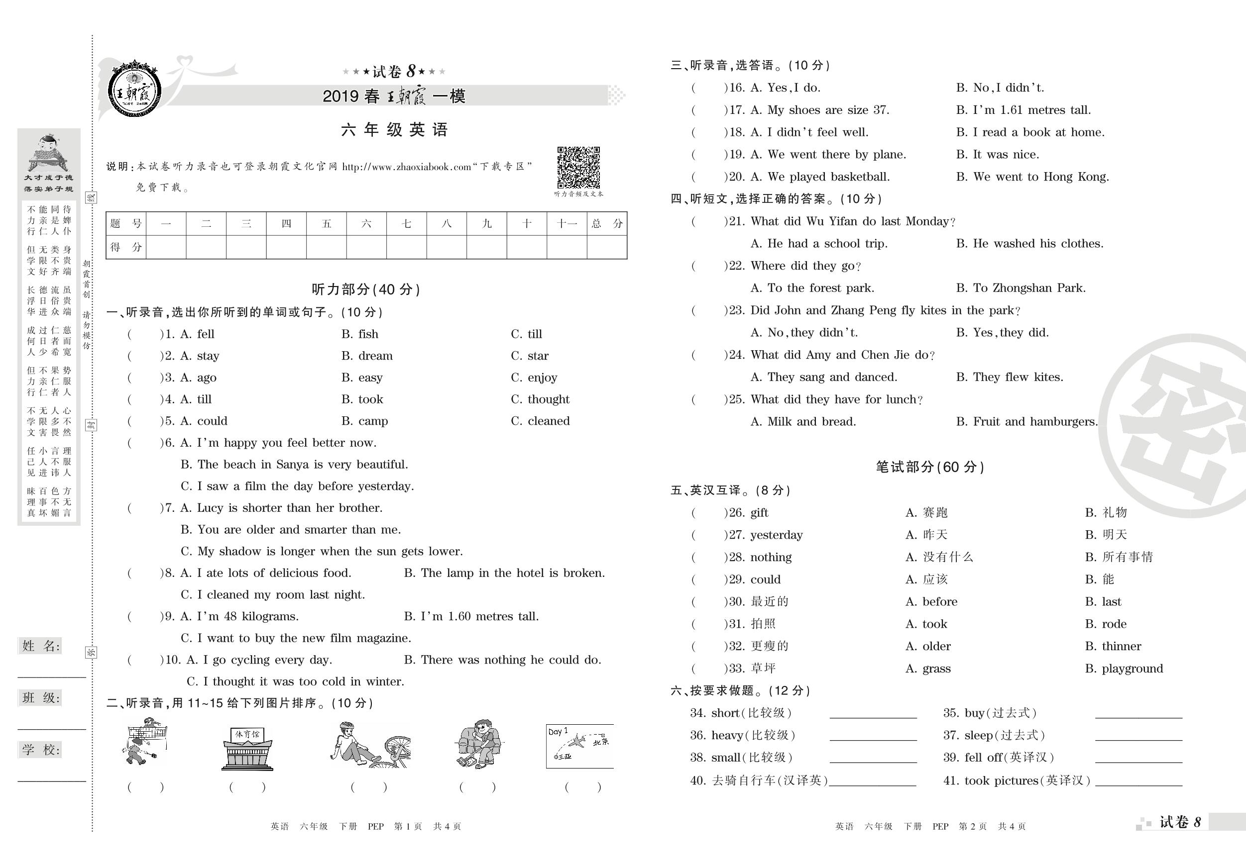 王朝霞期末模拟卷六年级下册英语(PEP版)_R210807170234【8】