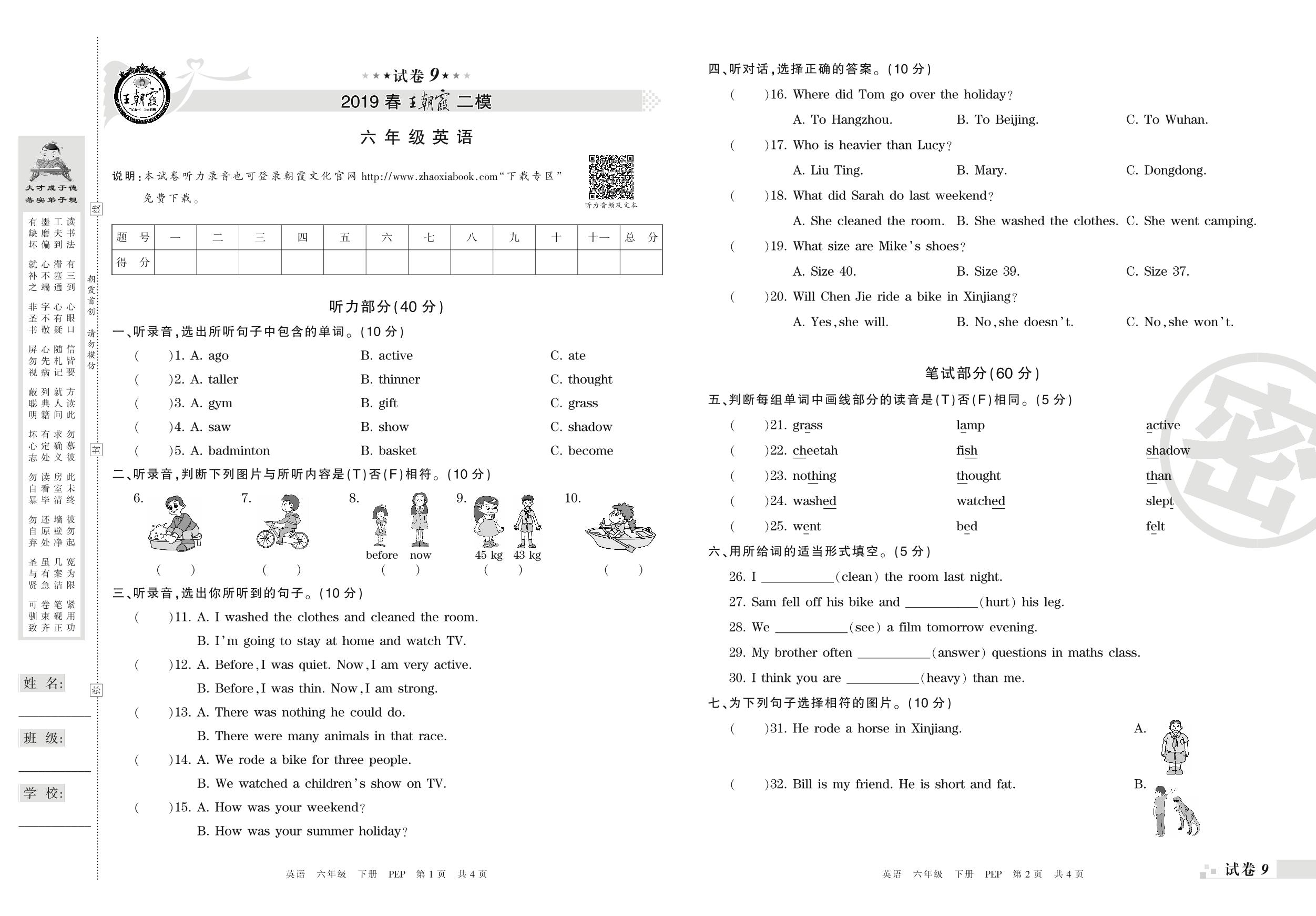 王朝霞期末模拟卷六年级下册英语(PEP版)_R210807170238【9】