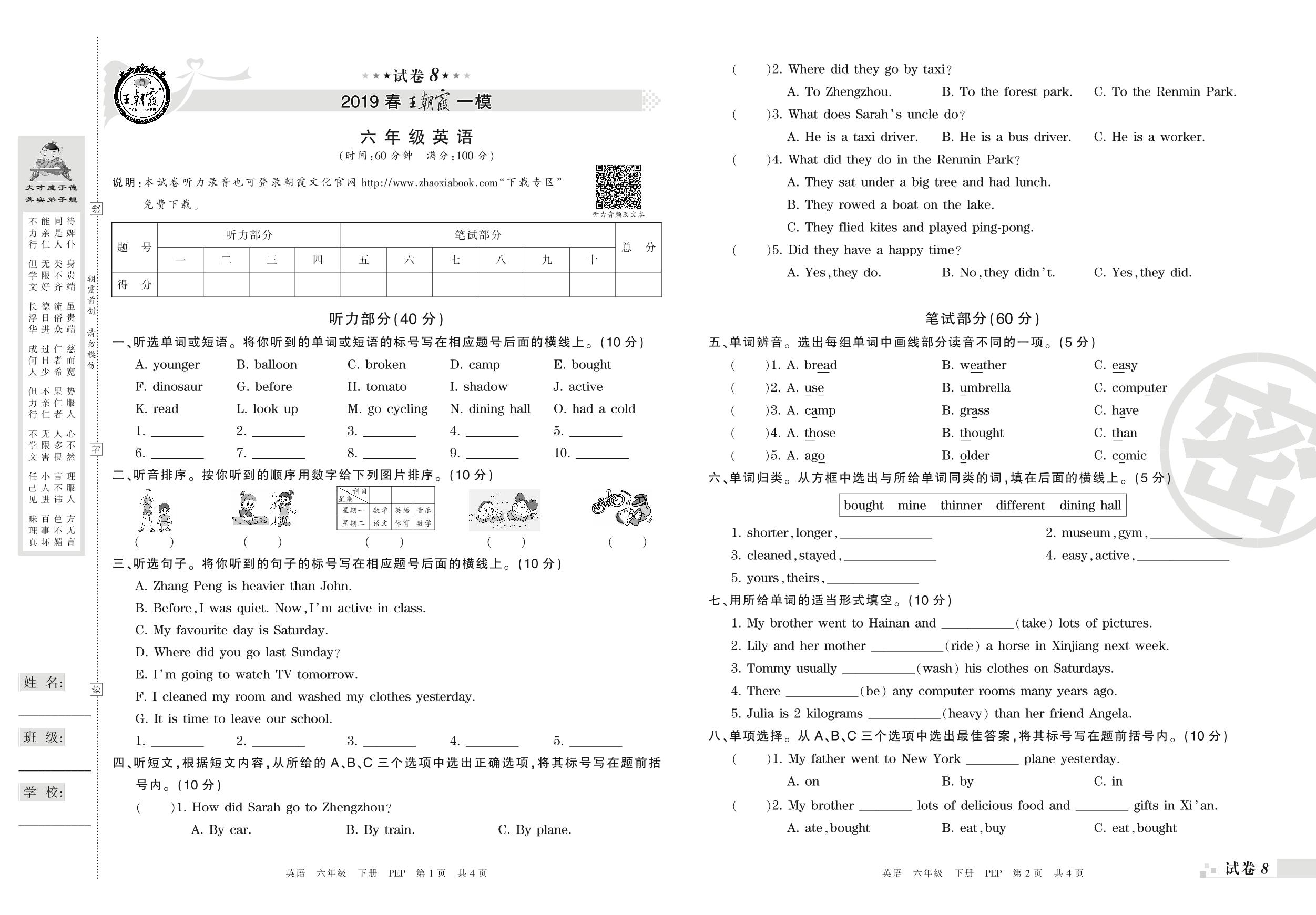 王朝霞期末模拟卷六年级下册英语(PEP版)_R210807170411【8】