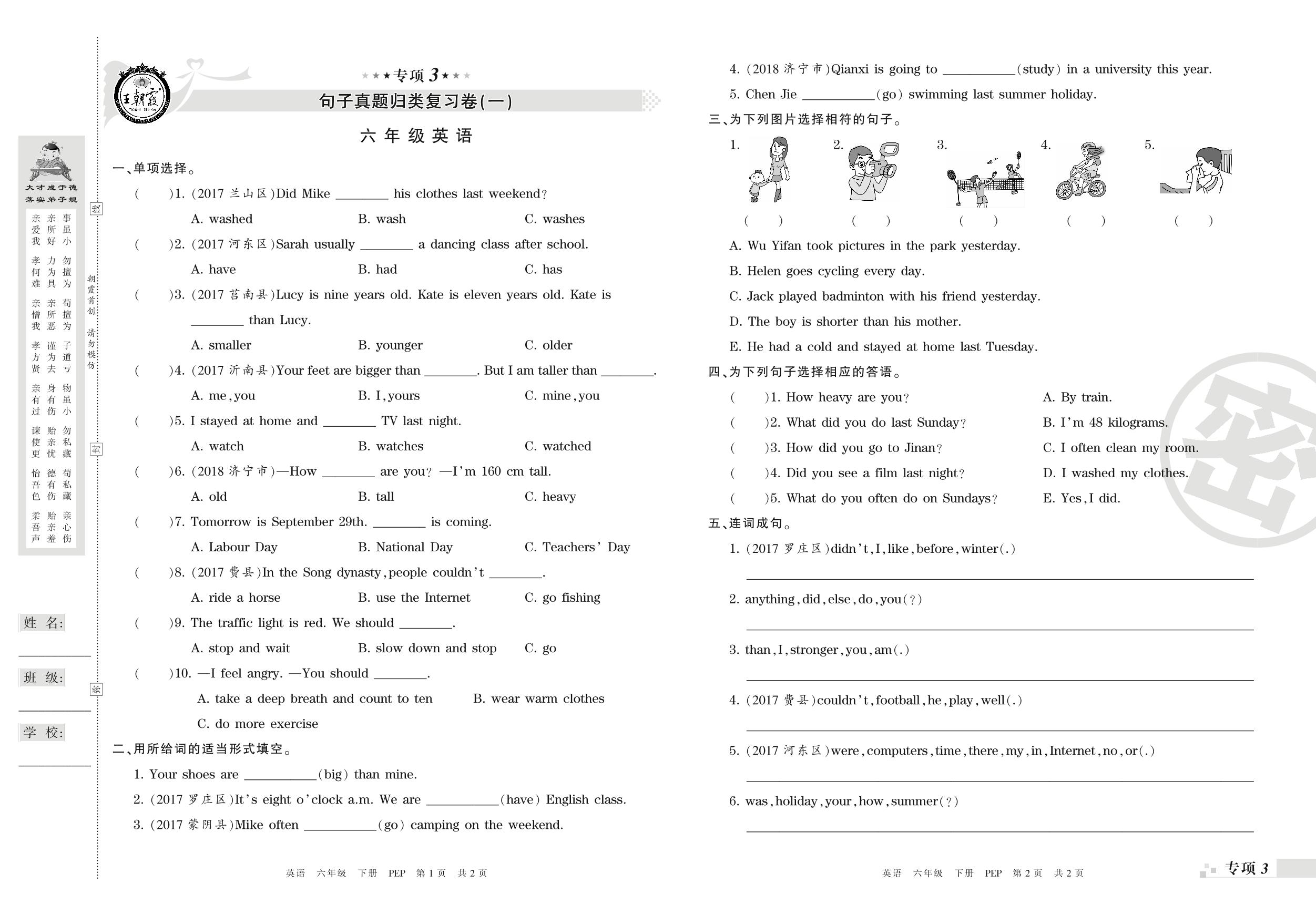 王朝霞期末专项卷——句子(一)(二)真题归类复习卷六年级下册英语(PEP版)_R210807170426【0】